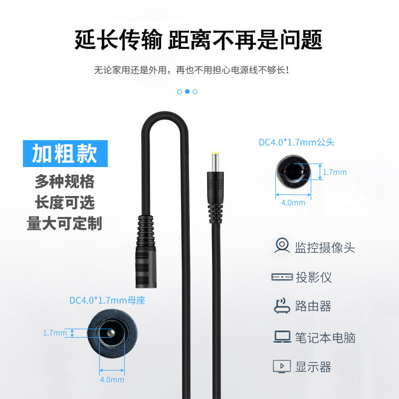 天猫景赛4017电源延长线DC4.0*1.7公母对接线适用于小米路由器小爱音箱监控摄像头电源适配器延长线1m/2m/3m加长