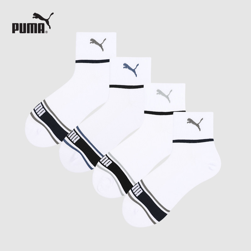 天猫PUMA彪马男士时尚百搭运动休闲吸汗透气商务健身中筒弹力棉袜4双