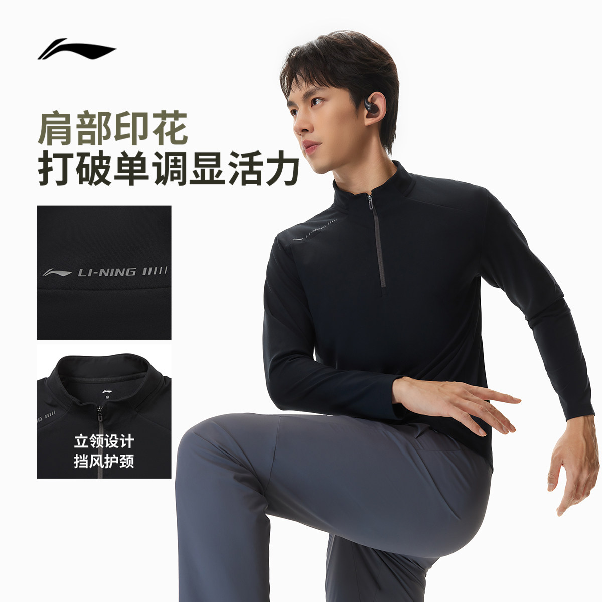 天猫李宁长袖T恤男士官方新款健身跑步内搭上衣休闲针织男装运动卫衣