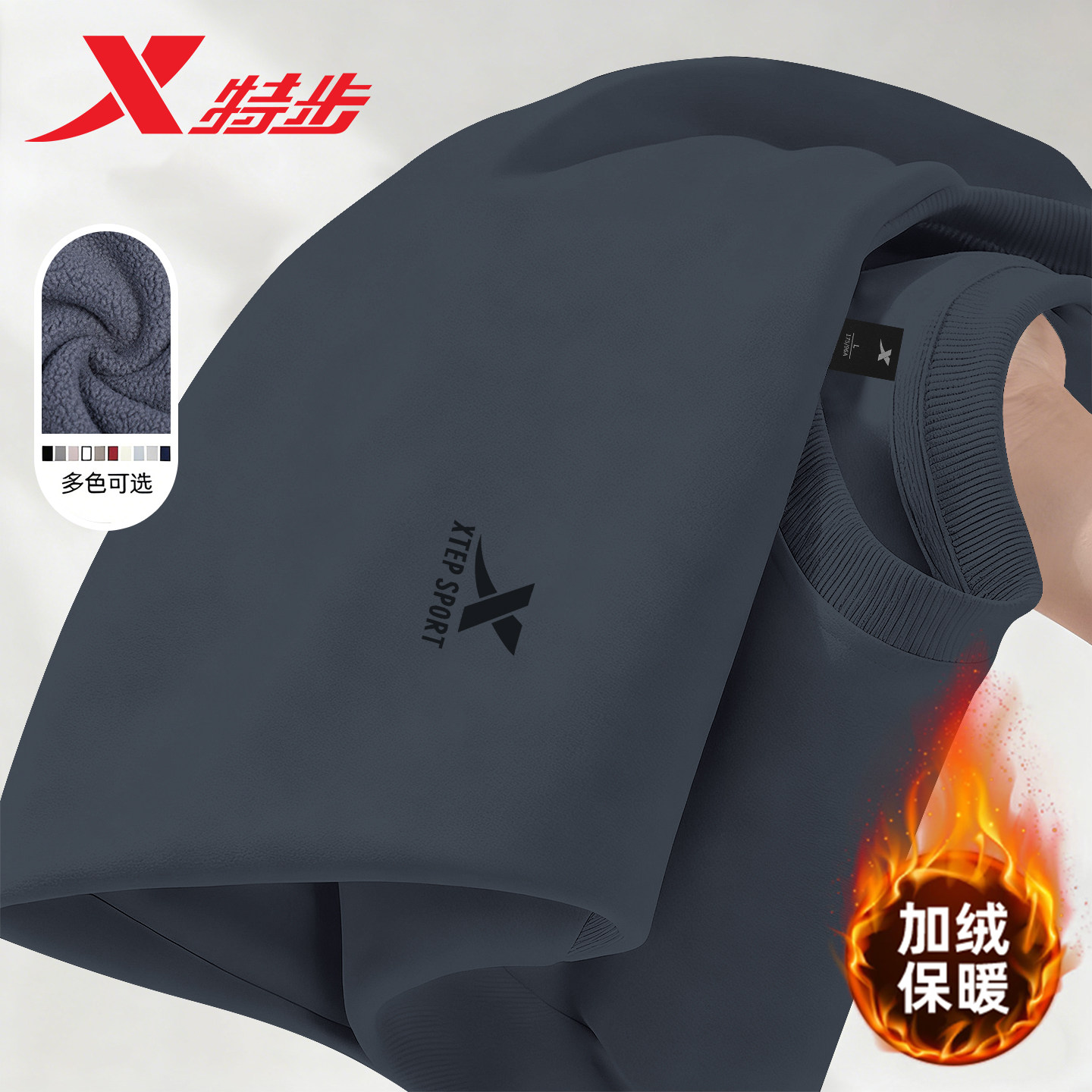 天猫特步加绒卫衣男装2026新款冬季加厚保暖休闲长袖t恤洋气运动服男