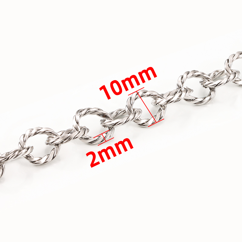 这款钛钢双织麻花链饰品是一款时尚而实用的DIY材料。链条坚固耐用,采用高品质的钛钢材质,不仅具有优异的耐腐蚀性和抗过敏性能,还具备独特的双织麻花设计,展现出优雅时尚的风格。这款饰品链条适用于制作项链、手链、裤链、包链等多种用途,可自由搭配各种服饰和配件,成为时尚搭配的亮点。无论是作为毛衣链还是日常佩戴的饰品,都能展现佩戴者的个性魅力。是一款不可或缺的时尚配饰材料。
