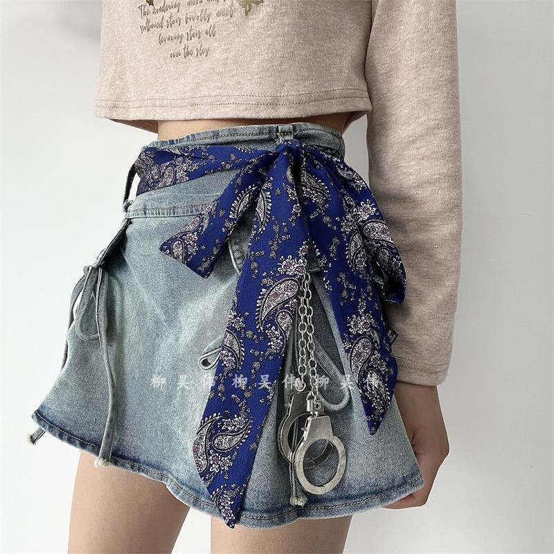 淘宝腰果花丝巾腰带女高级感裤子上的配饰裤链百搭皮带女款配牛仔裤潮