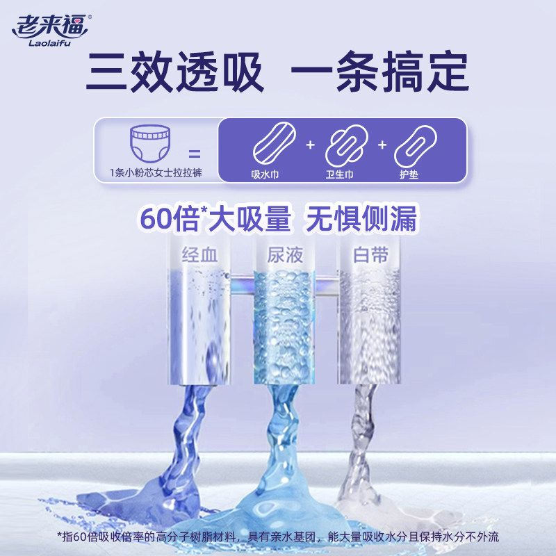 老来福成人拉拉裤女士专用L码装,专为中老年女性设计,采用内裤型贴身剪裁,穿脱便捷,宛如普通内裤。精选高吸收芯体,快速锁水,长效干爽,有效防漏,夜间使用更安心。特别添加除臭抑菌因子,有效中和异味,保持清新舒适。柔软亲肤表层,减少摩擦,呵护敏感肌肤。弹性腰围设计,贴合身形不勒腰,活动自如。适用于轻度至中度失禁人群,是居家、出行护理的理想选择。老来福以贴心品质,守护长辈尊严与舒适,让关爱无处不在。