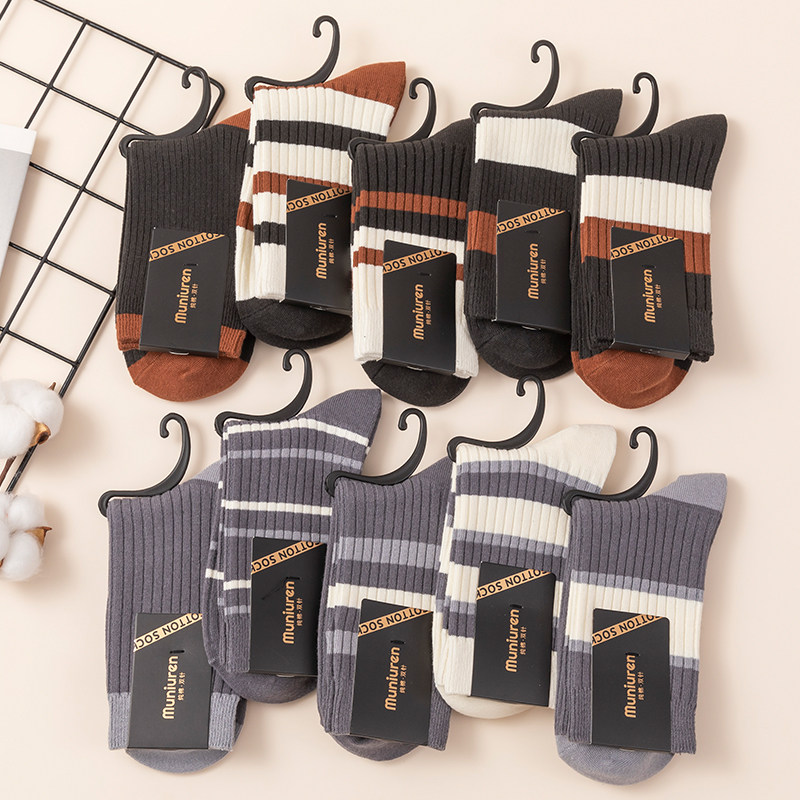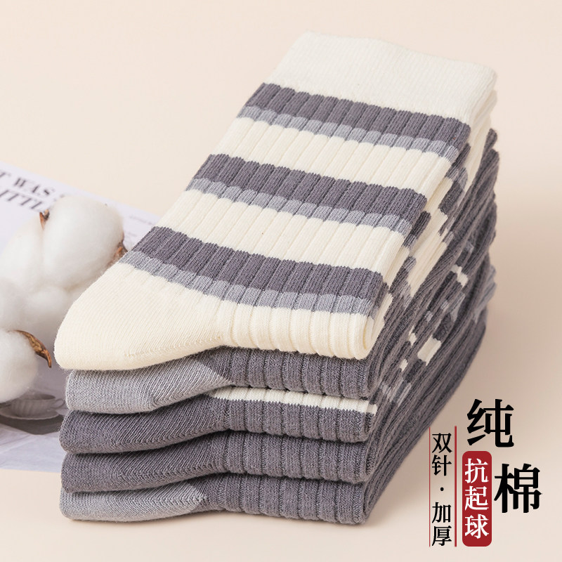 天猫双针袜子男秋冬中筒运动袜加厚保暖棉袜高端长袜休闲条纹袜