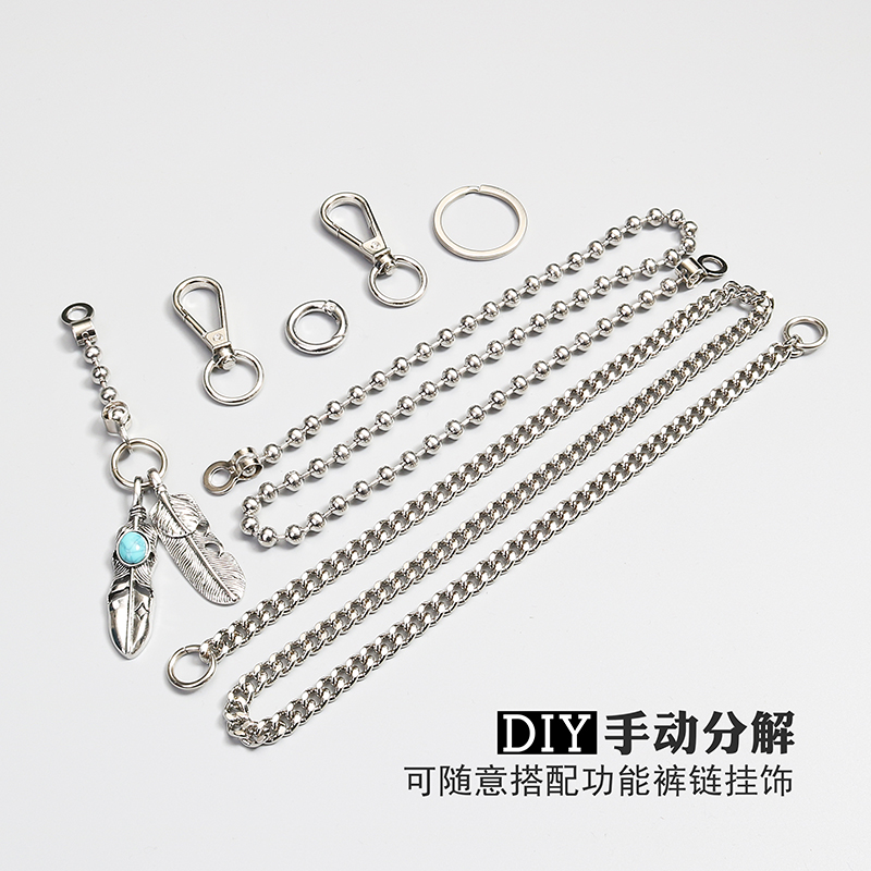 淘宝复古羽毛嘻哈双层可拆卸金属裤链男潮腰链子配饰裤子挂链装饰挂件