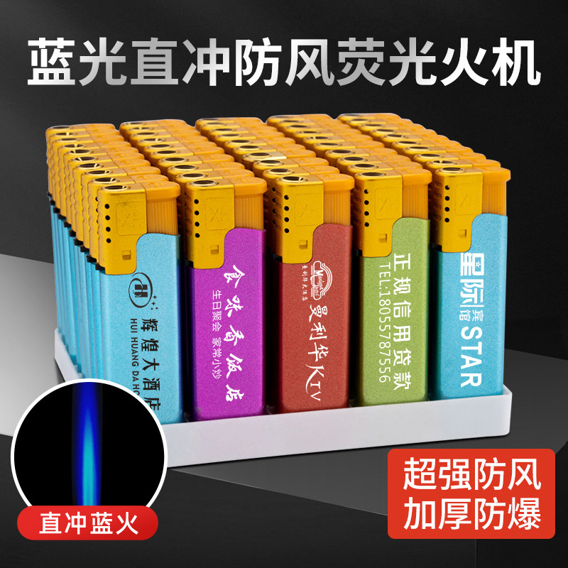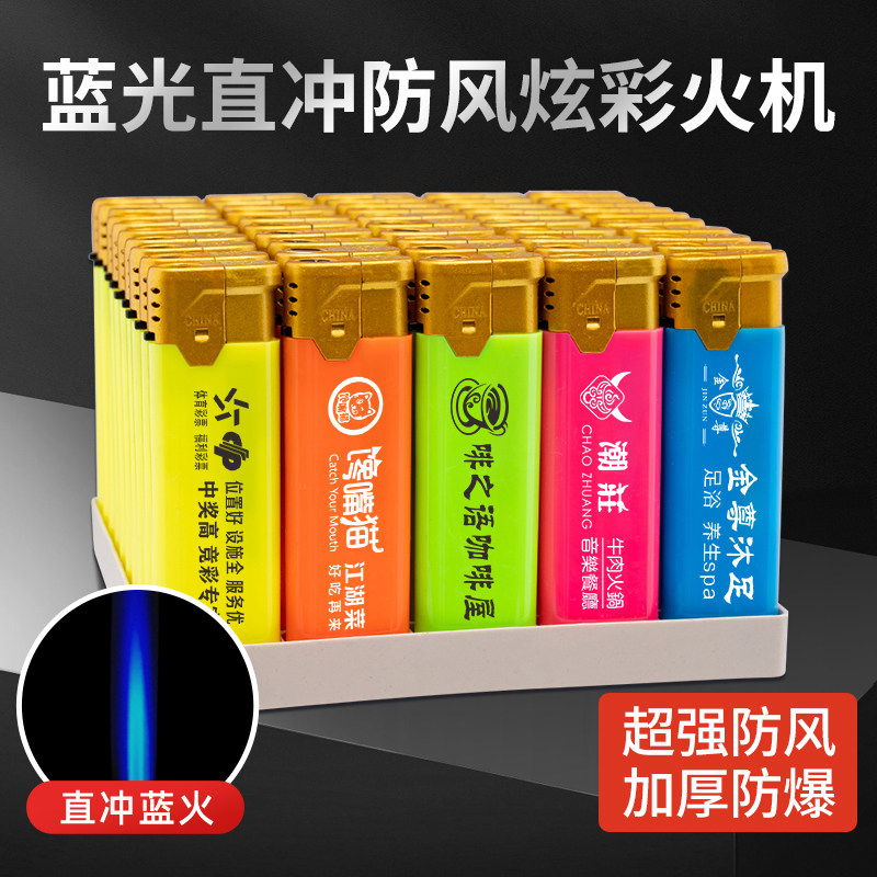 淘宝一次性防风打火机塑料直冲蓝火创意个性广告打火机定做定制印logo