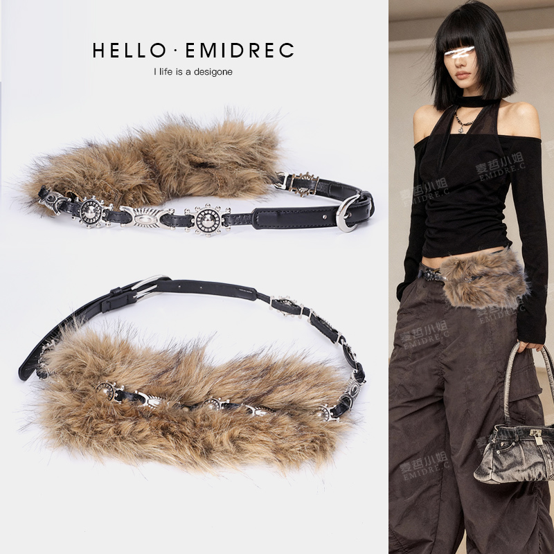 天猫复古亚文化毛毛腰带女细裤链皮带配牛仔裤装饰腰间配饰爵士舞腰搭