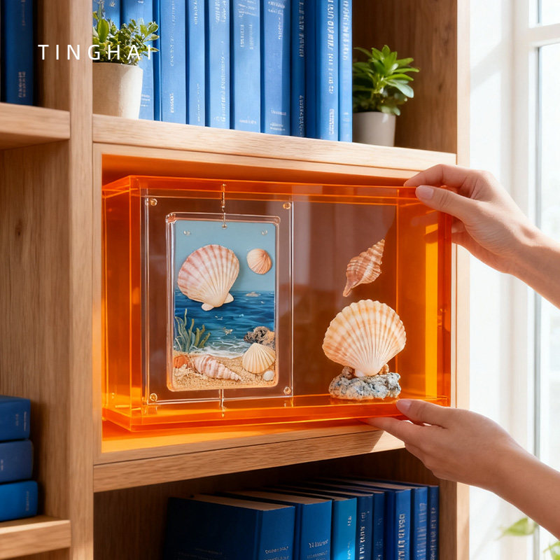 亚克力盲盒手办展示盒,采用高透耐磨亚克力材质,透明质感清晰展现手办细节,防尘防潮,有效保护珍藏公仔。设计简约百搭,适用于盲盒娃娃、小卡、摆件等收藏品的收纳与陈列,兼具实用性与美观性。多层结构或可调节隔板设计,满足不同尺寸手办摆放需求,稳固承托不易倾倒。支持定制尺寸、颜色及LOGO,满足个性化展示需求。无论是桌面装饰、店铺陈列还是收藏爱好者自用,都能提升空间格调,让每一份热爱都被精心呵护与展示。