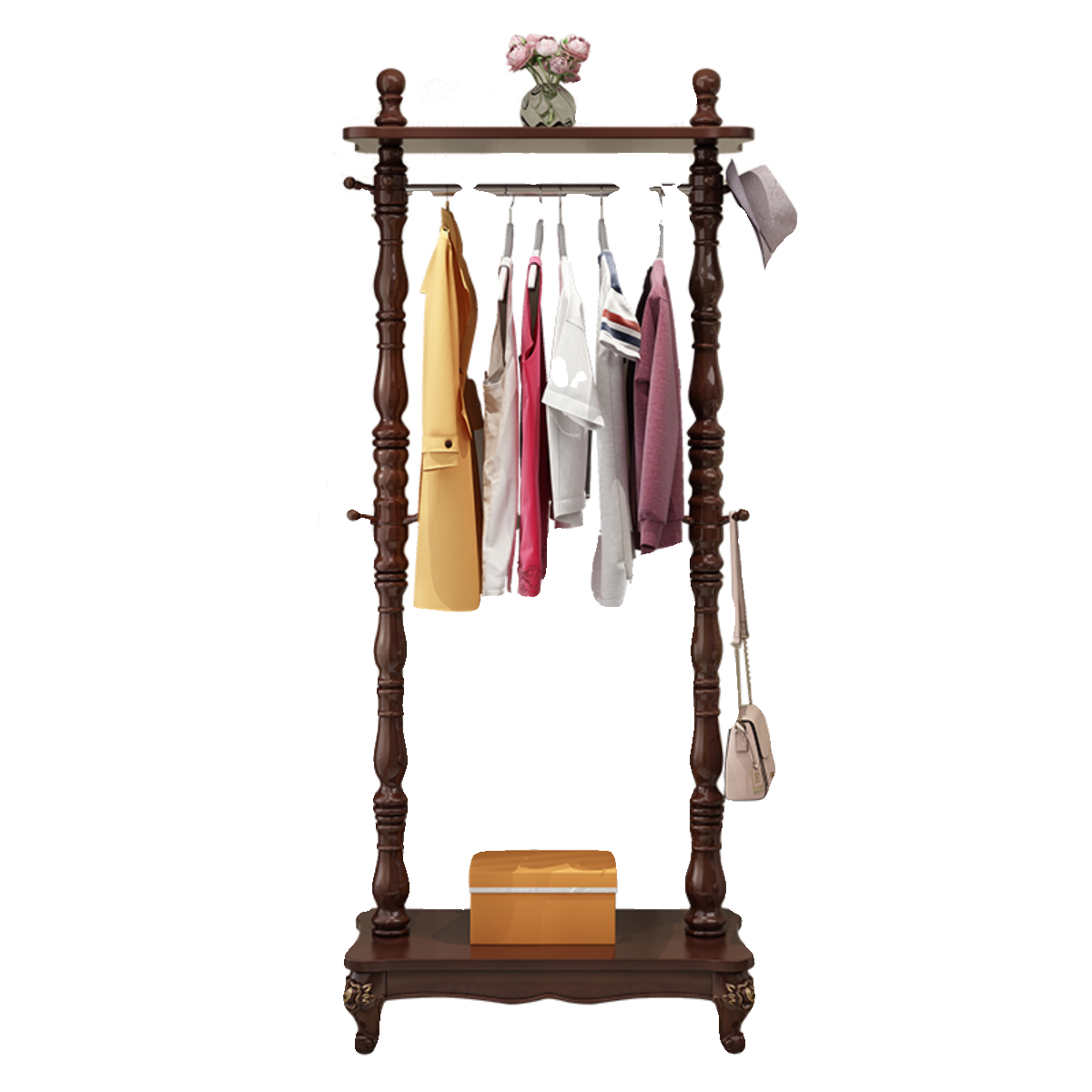 淘宝卧室挂衣架落地式欧式实木衣帽架客厅置物架中式家用收纳衣服架子