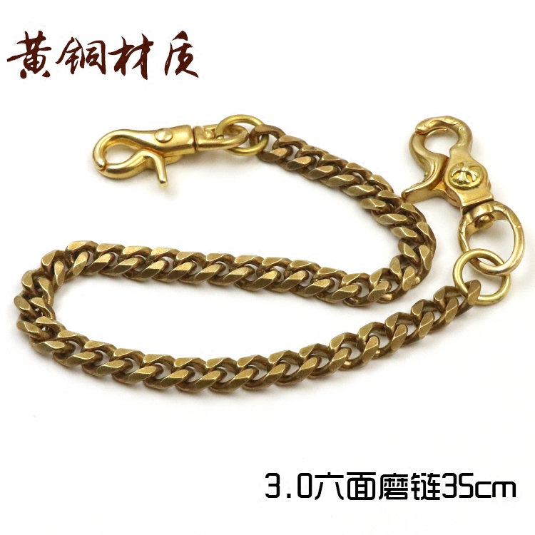 淘宝包邮黄铜钥匙链纯铜男士腰挂钥匙扣复古黄铜环圈财布链养牛人裤链