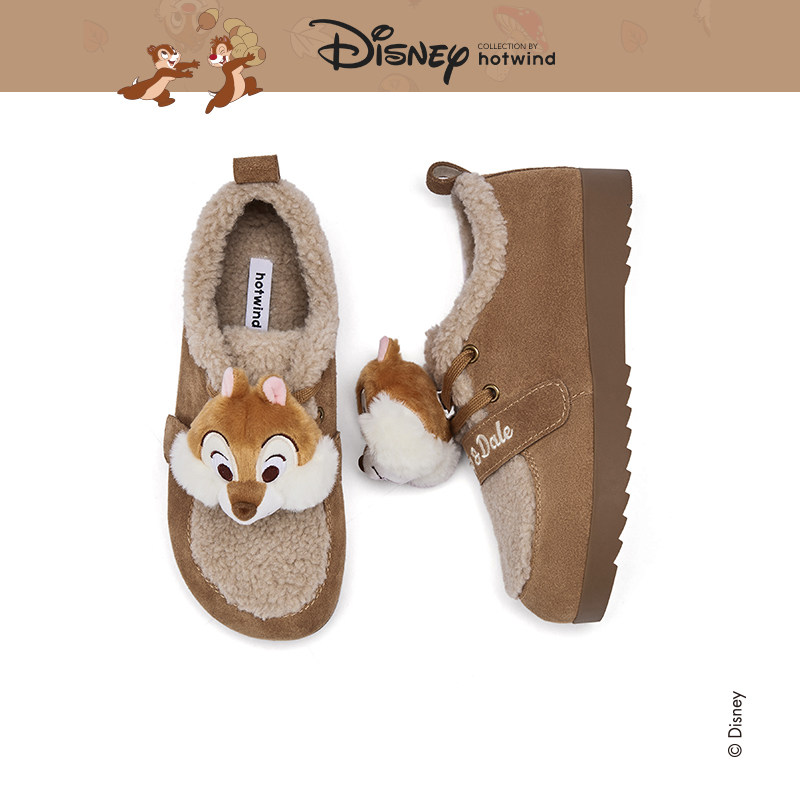 天猫【迪士尼系列】热风雪地靴2025年冬季新款厚底棉鞋棕色勃肯风女鞋