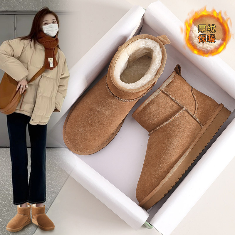 天热风厚底雪地靴女鞋2025年冬季新款毛绒短筒靴棕色毛毛鞋复古鞋子