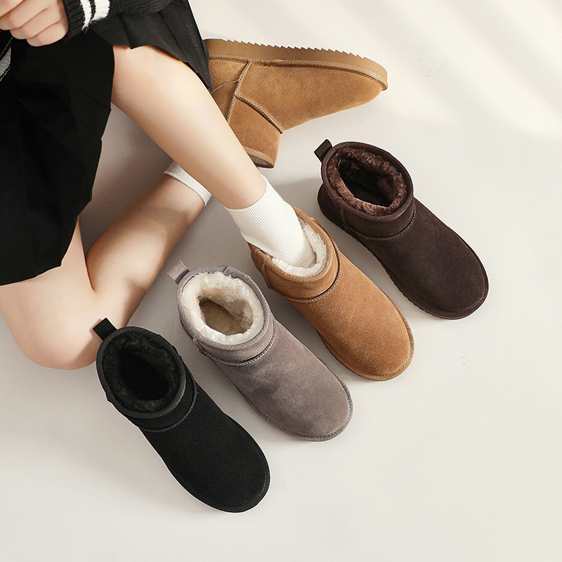 淘头层牛皮+羊皮毛一体雪地靴一鞋两穿防水防滑加厚百搭中筒羊毛靴