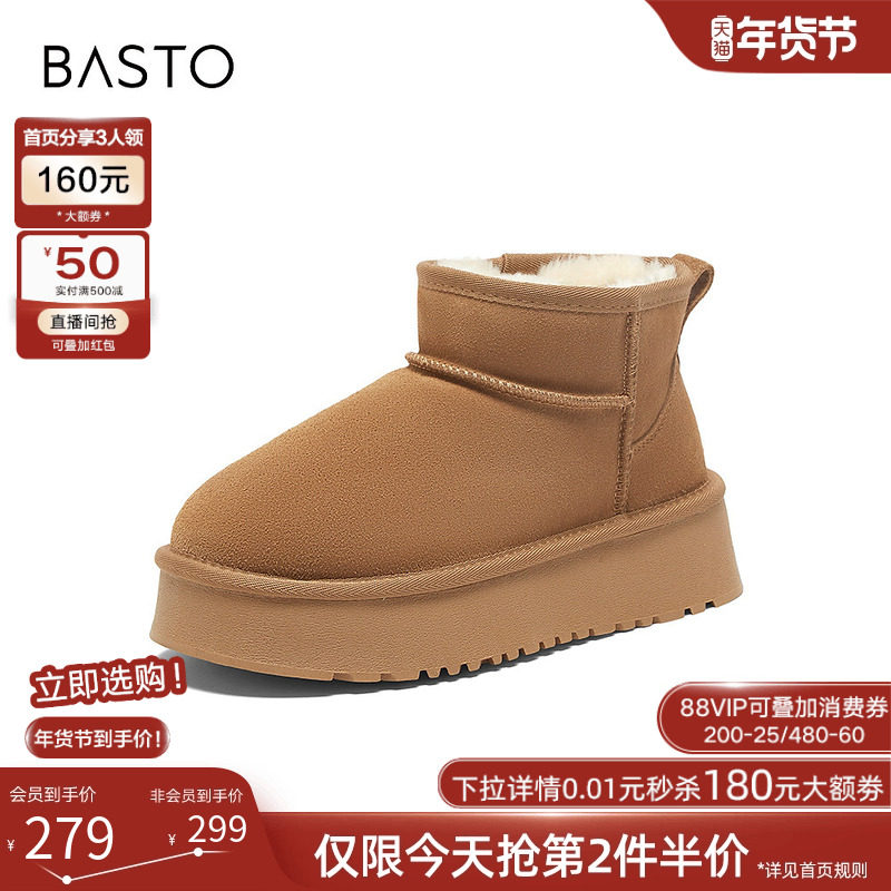 天猫百思图冬新款厚底雪地靴女鞋加厚毛毛勃肯鞋加绒保暖棉鞋LD520DD3