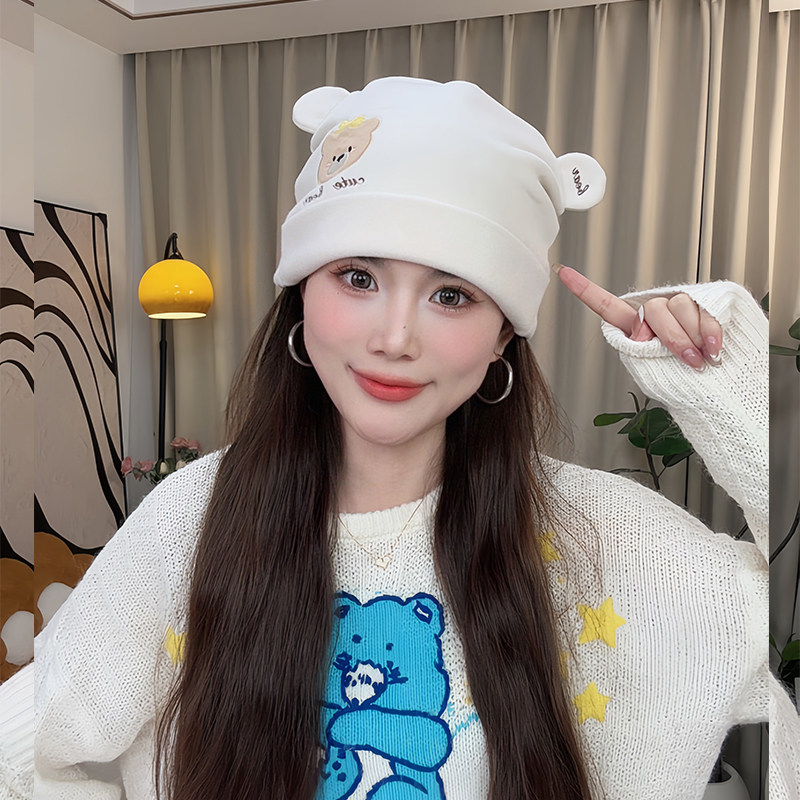 孕妇产后坐月子帽大头围秋冬薄款防风卷边显脸小大码包头堆堆帽子