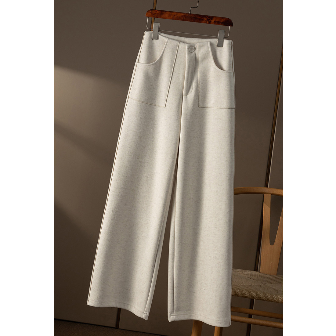 淘宝去年卖了八千条!山羊绒+羊毛~人字纹直筒微阔腿软毛呢西裤女显瘦
