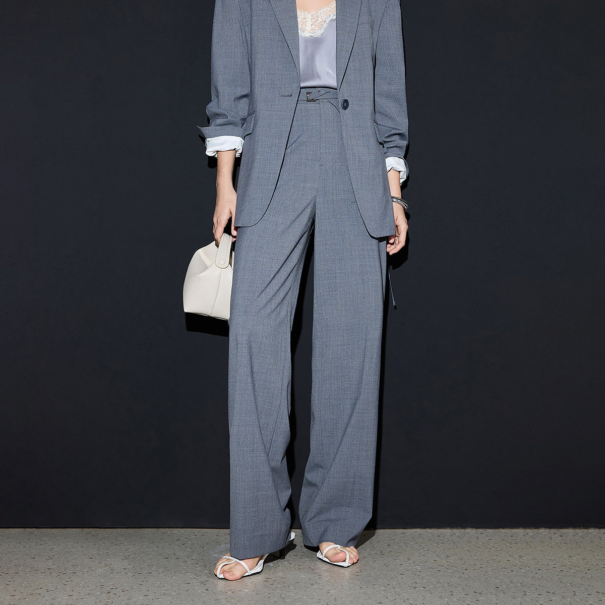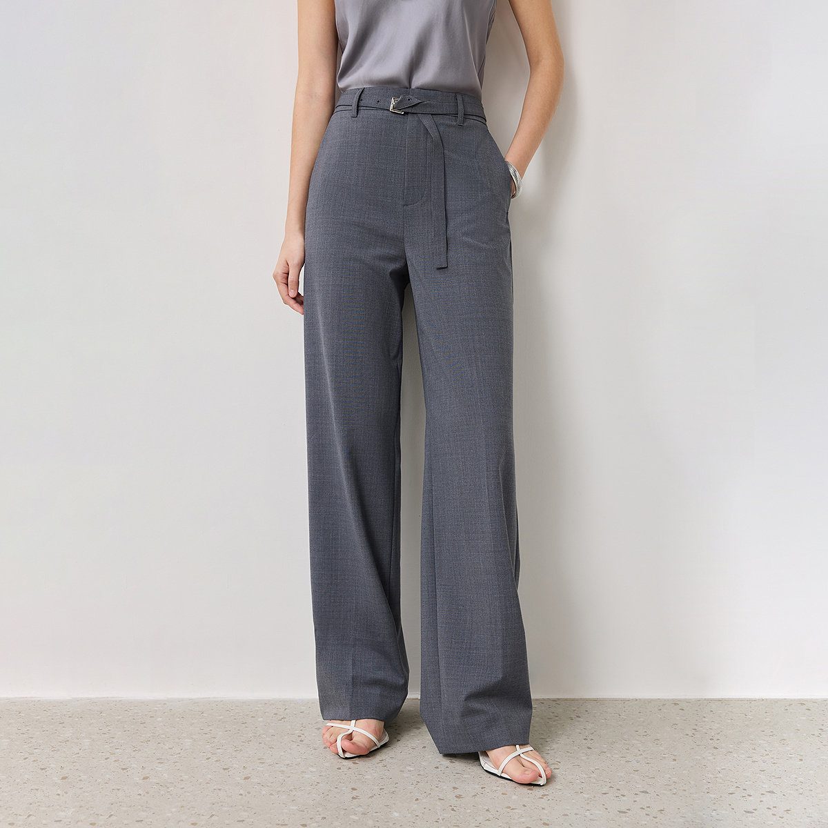 天【秀场同款 王楚然同款】朗姿老钱风灰色通勤西裤女设计感阔腿裤