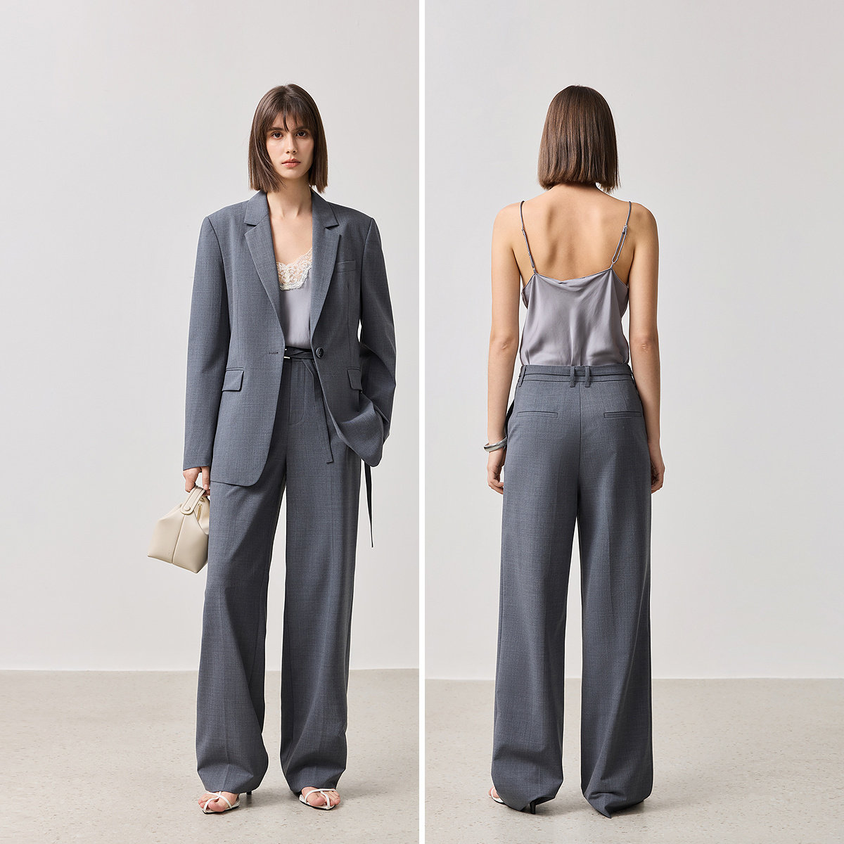 【秀场同款 王楚然同款】朗姿老钱风灰色通勤西裤女设计感阔腿裤