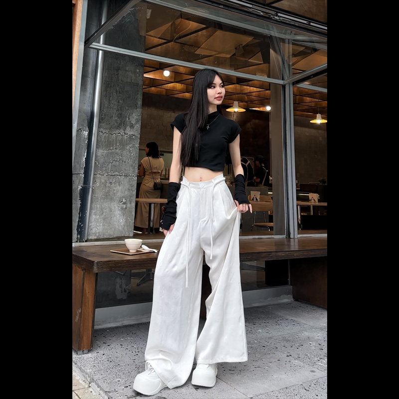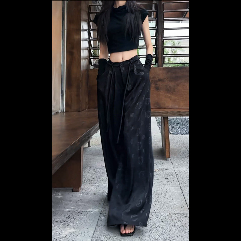 淘宝现货 31126冰爽阔腿裤2025年超薄春夏新款高腰玫瑰花朵休闲西裤