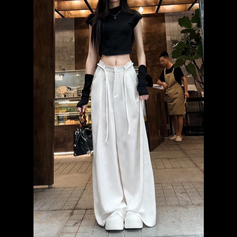灰色西装裤女春秋高腰高级感垂感冰丝直筒显瘦西裤加长拖地阔腿裤