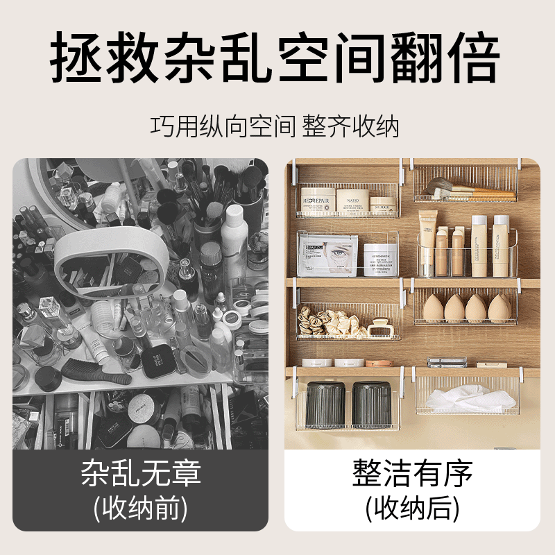 淘宝卫生间镜柜收纳盒洗漱台壁挂厨柜下挂免打孔挂篮浴室化妆品置物架
