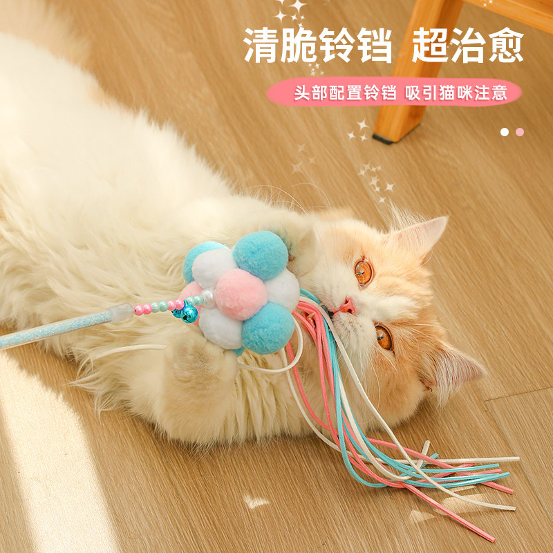 天猫仙女逗猫棒猫咪玩具自嗨解闷长杆带铃铛耐咬羽毛逗猫球毛线自嗨球