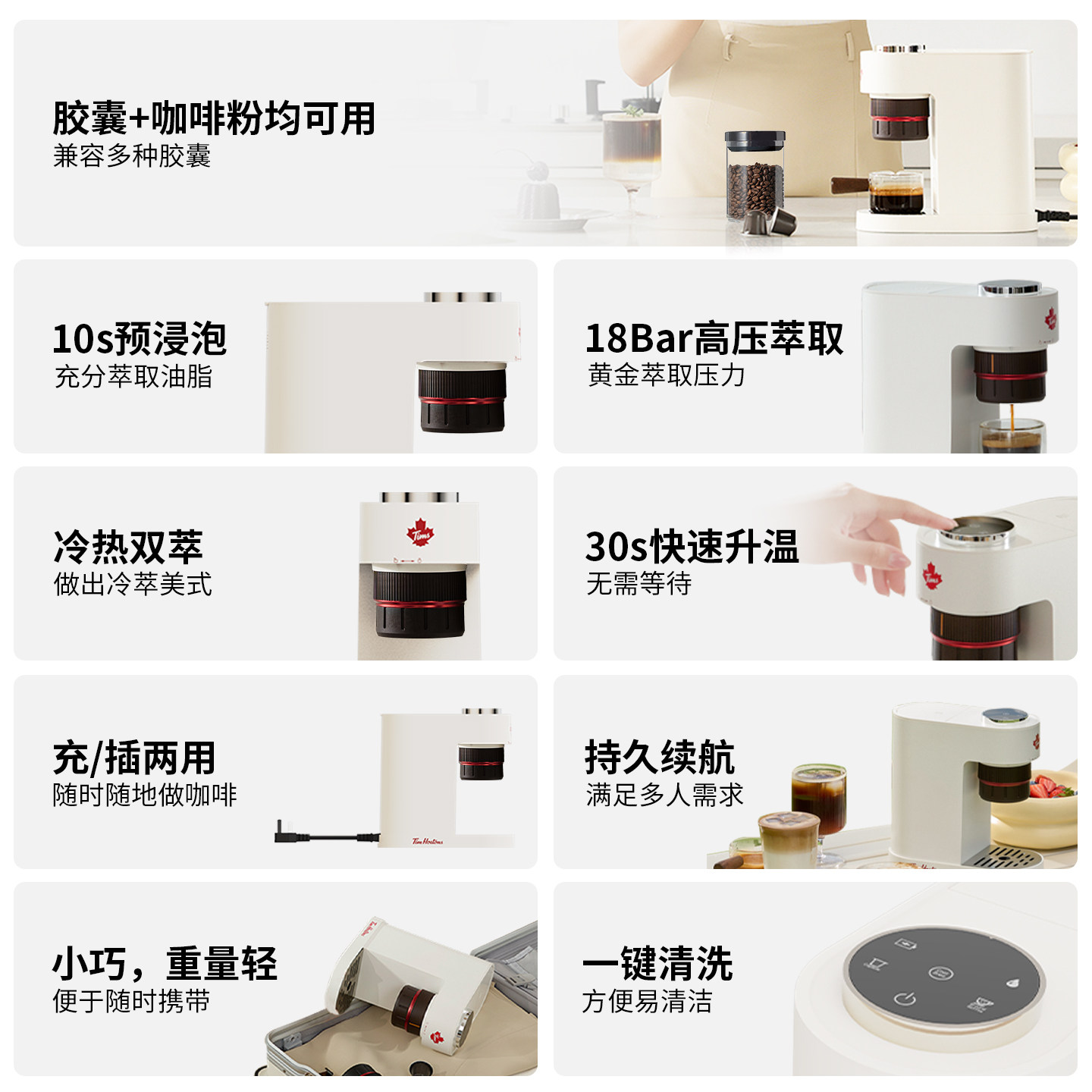 【政府补贴15%】Tims天好A2胶囊咖啡机,集小巧便携与高效便捷于一体,专为现代家庭与办公场景设计。支持全半自动双模式,一键操作即可享受香醇咖啡,适配主流胶囊系统,兼容性强。机身采用优质材料,简约时尚,节省空间,轻松融入各种家居风格。内置智能温控与快速加热技术,3秒预热,30秒出杯,满足快节奏生活需求。节能环保,运行低噪,使用更安全。现享政府15%补贴优惠,性价比超高,是咖啡爱好者入门或升级的理想之选。无论是清晨提神还是午后小憩,Tims天好A2都能为您带来专业级咖啡体验。