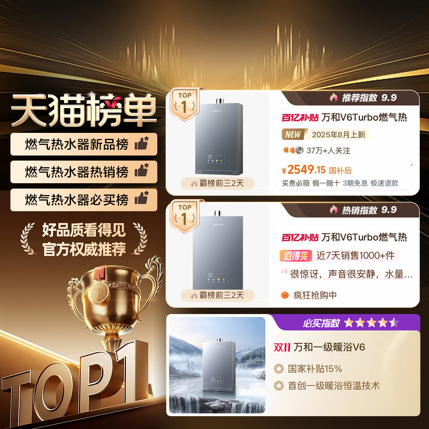 天猫[政府补贴]万和安睡洗一级节能静音燃气热水器恒温增压V6Turbo