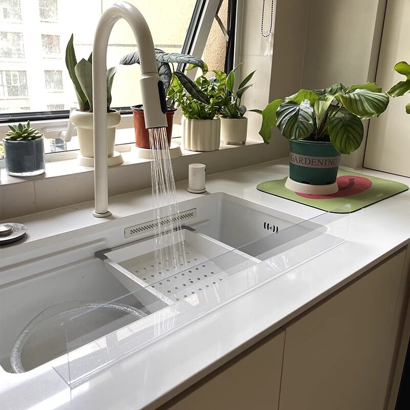 水槽挡水板是厨房必备的实用小工具,专为解决洗碗、洗菜时水花四溅的问题而设计。采用环保硅胶或防水材质,柔软耐用,可灵活贴合不同尺寸的水槽边缘。安装简便,无需工具,直接卡扣或粘贴即可稳固使用。有效阻挡水流外溢,保持台面干燥整洁,避免积水滋生细菌,同时保护橱柜不受潮。适用于各种家用洗碗池、洗手池,尤其适合有小孩或经常下厨的家庭。挡水板边缘加高设计,防溅效果更佳,清洗后一冲即净,持久如新。小巧不占空间,是提升厨房使用体验的贴心神器。