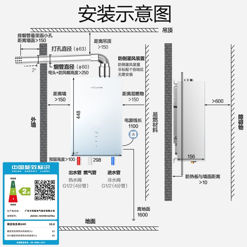 天[政府补贴]万和燃气热水器家用天然气一级节能恒温16升官方旗舰店
