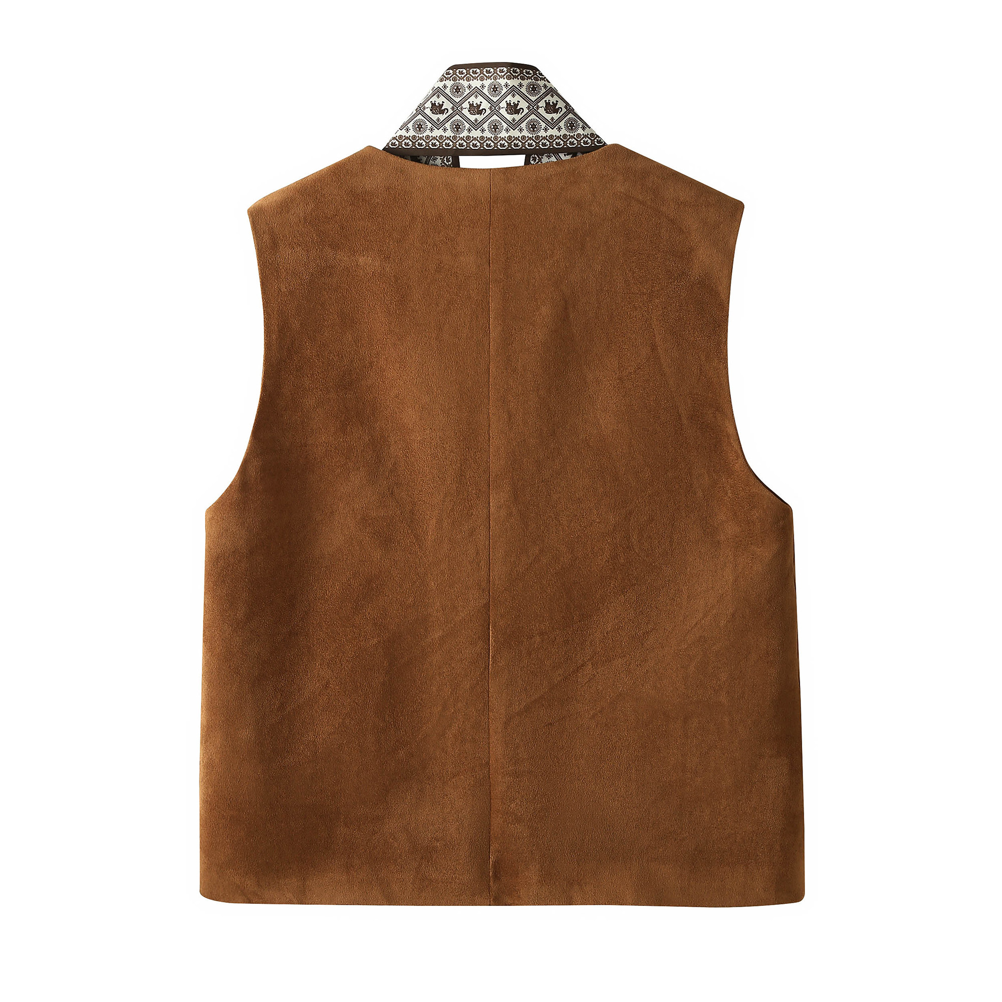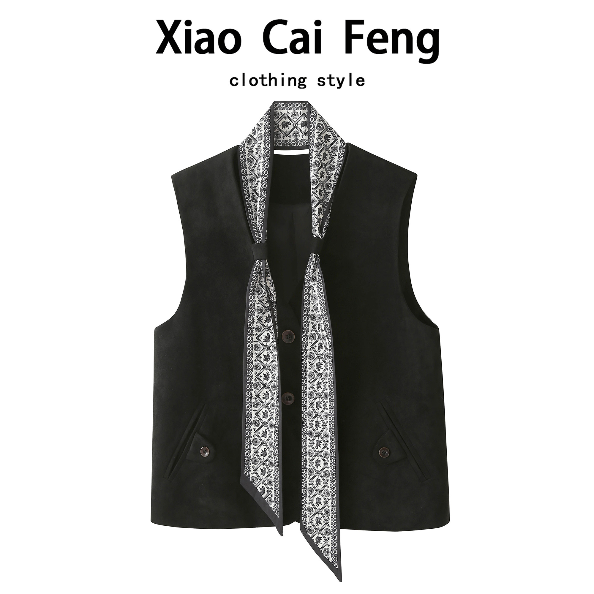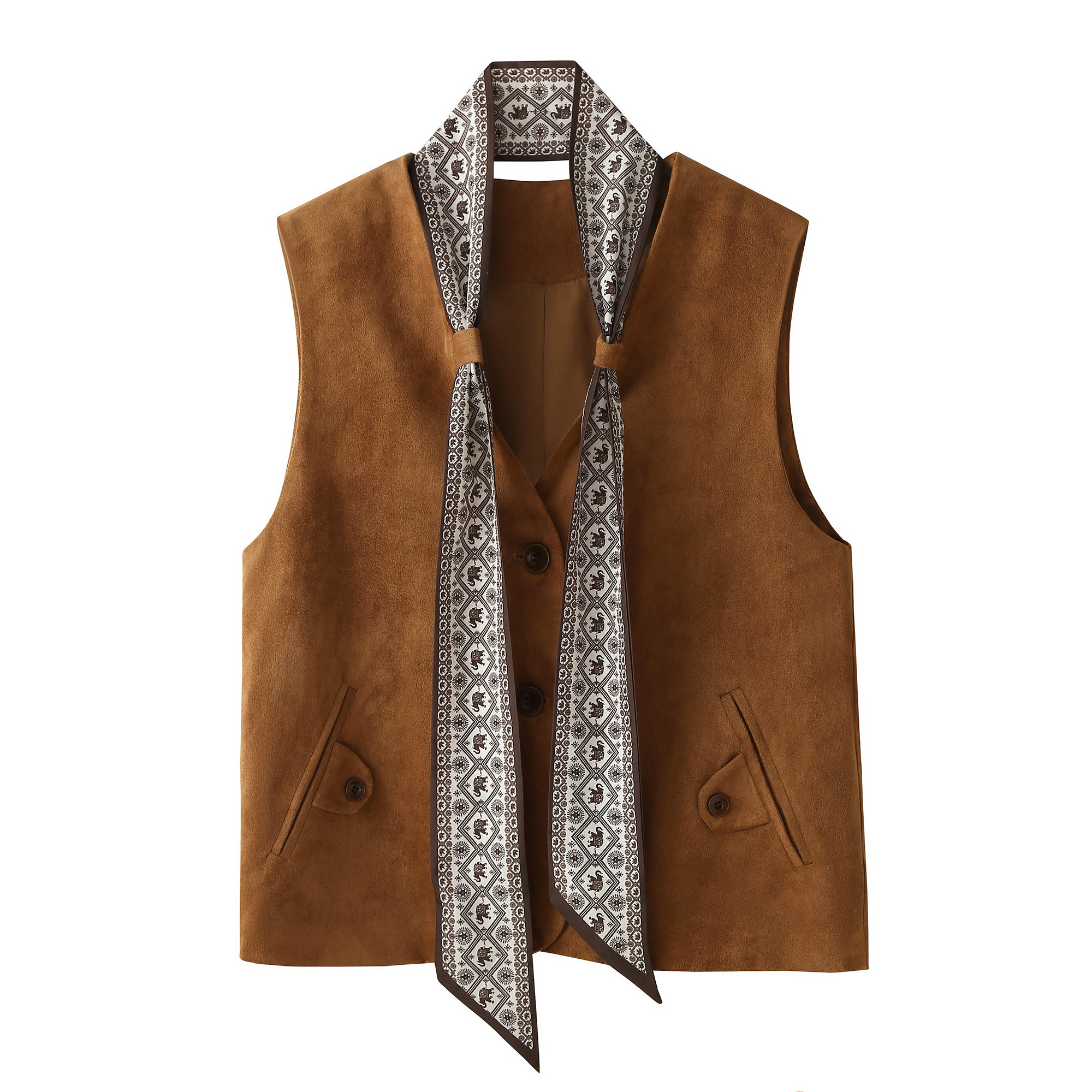 淘宝欧货麂皮绒马甲女秋装法式丝巾v领上衣洋气叠穿无袖坎肩背心外套