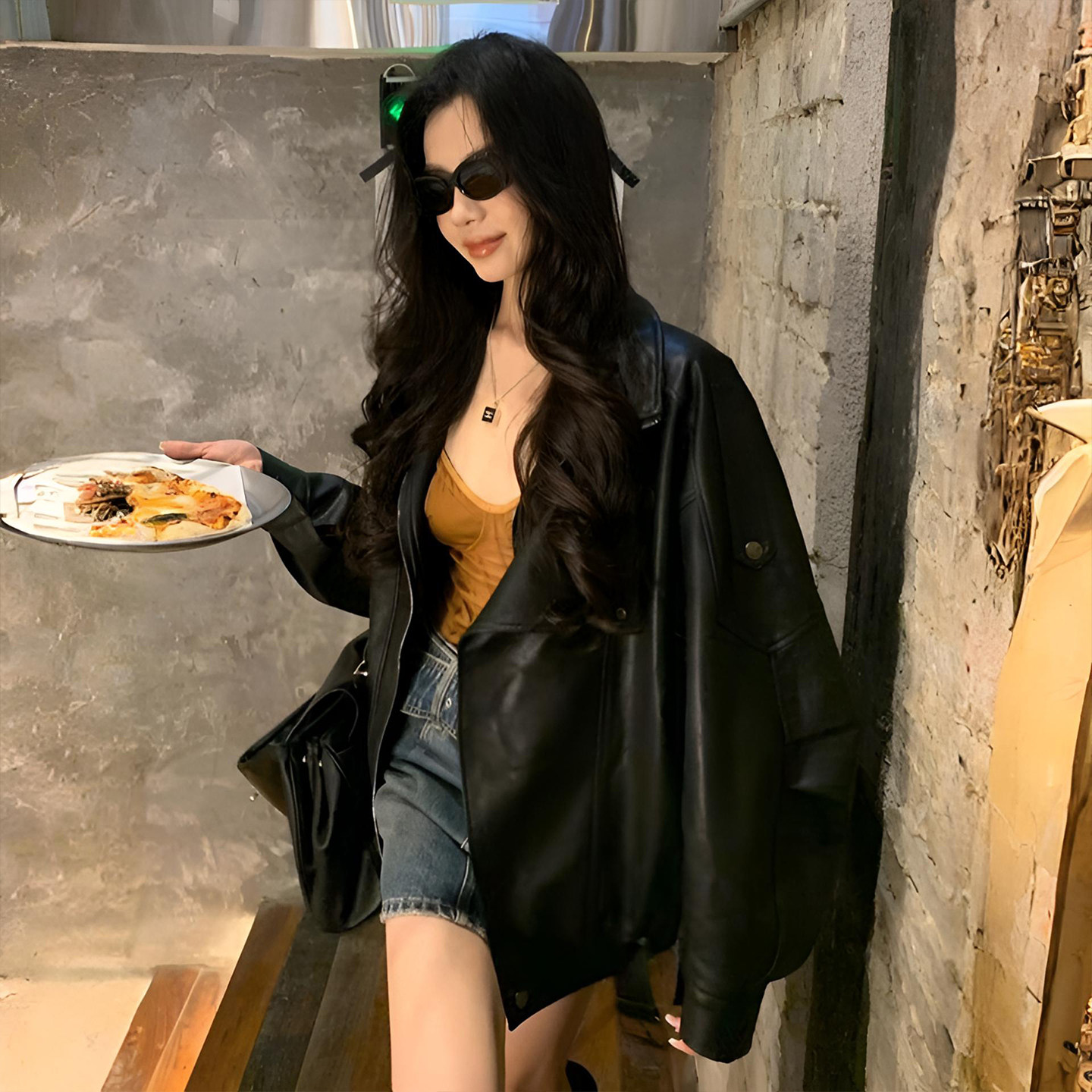 这款专为大码女性设计的300斤特大码美式高街黑色皮衣,融合高级感与实用时尚,采用优质PU皮革打造,挺括有型且耐磨耐穿。宽松廓形剪裁巧妙修饰身形,包容性强,轻松驾驭各种体型。经典立领、金属拉链与对称口袋设计,彰显美式街头酷感风格。内里加绒设计兼顾保暖与舒适,四季皆宜。无论是搭配连衣裙、牛仔裤还是卫衣,都能轻松穿出高级时尚感。百搭黑色调低调百搭,细节走线精致,凸显品质。专为胖MM量身打造,自信展现独特魅力,是追求个性与舒适并重的必备单品。