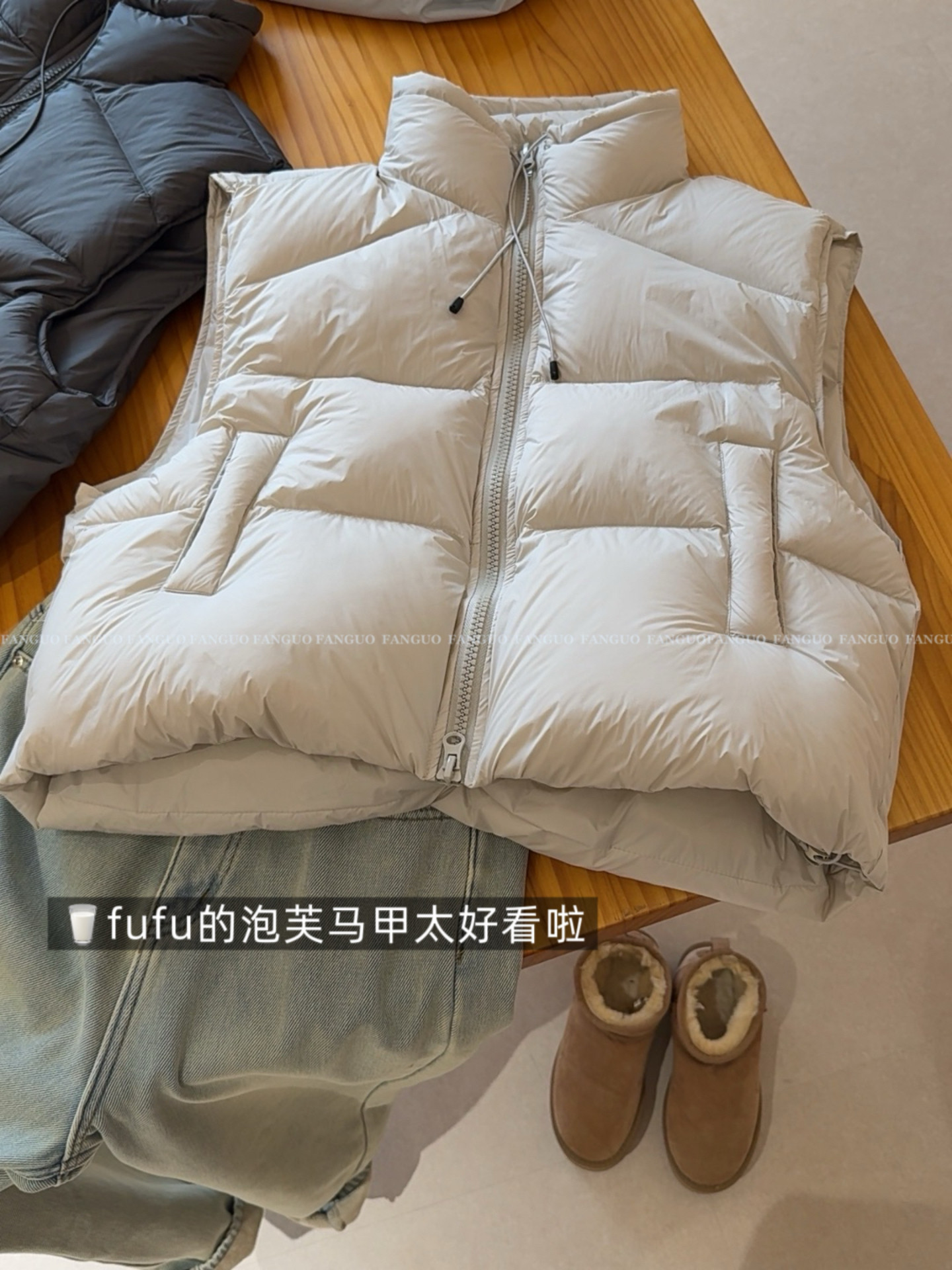 韩里韩气巨百搭!云朵90白鸭绒休闲羽绒服马甲外套,以轻盈蓬松的云朵质感为设计灵感,采用高品质90%白鸭绒填充,保暖性出众却毫无厚重感。简约利落的剪裁融合韩式慵懒风格,轻松打造冬日时尚造型。无袖马甲设计灵活百搭,可叠穿毛衣、卫衣或大衣,层次感十足,适合多种场合。多色可选,细节精致,拉链顺滑,侧边插袋实用贴心。无论是通勤、逛街还是出游,都能穿出温柔又高级的韩系氛围感,是冬日衣橱不可或缺的实用单品。保暖、时尚、百搭,一件搞定!