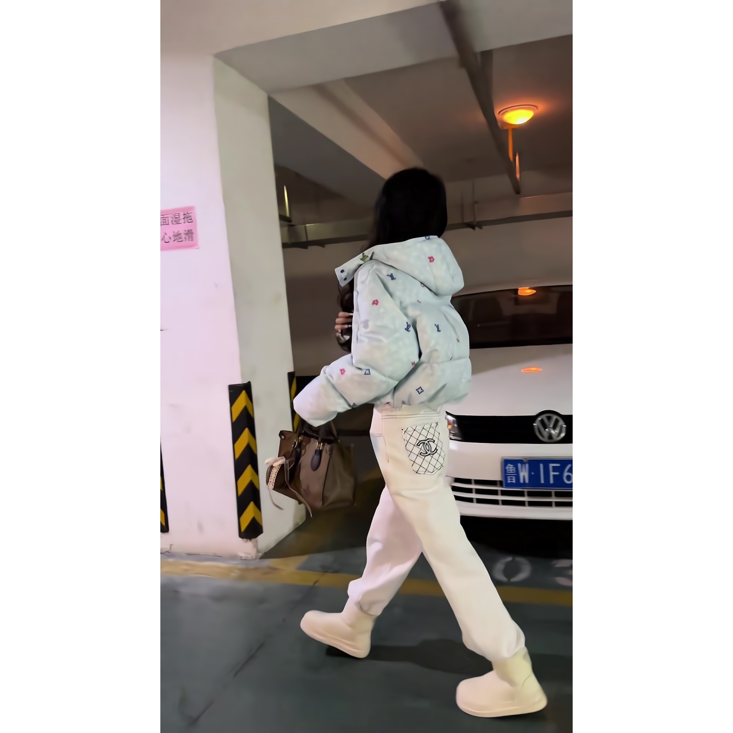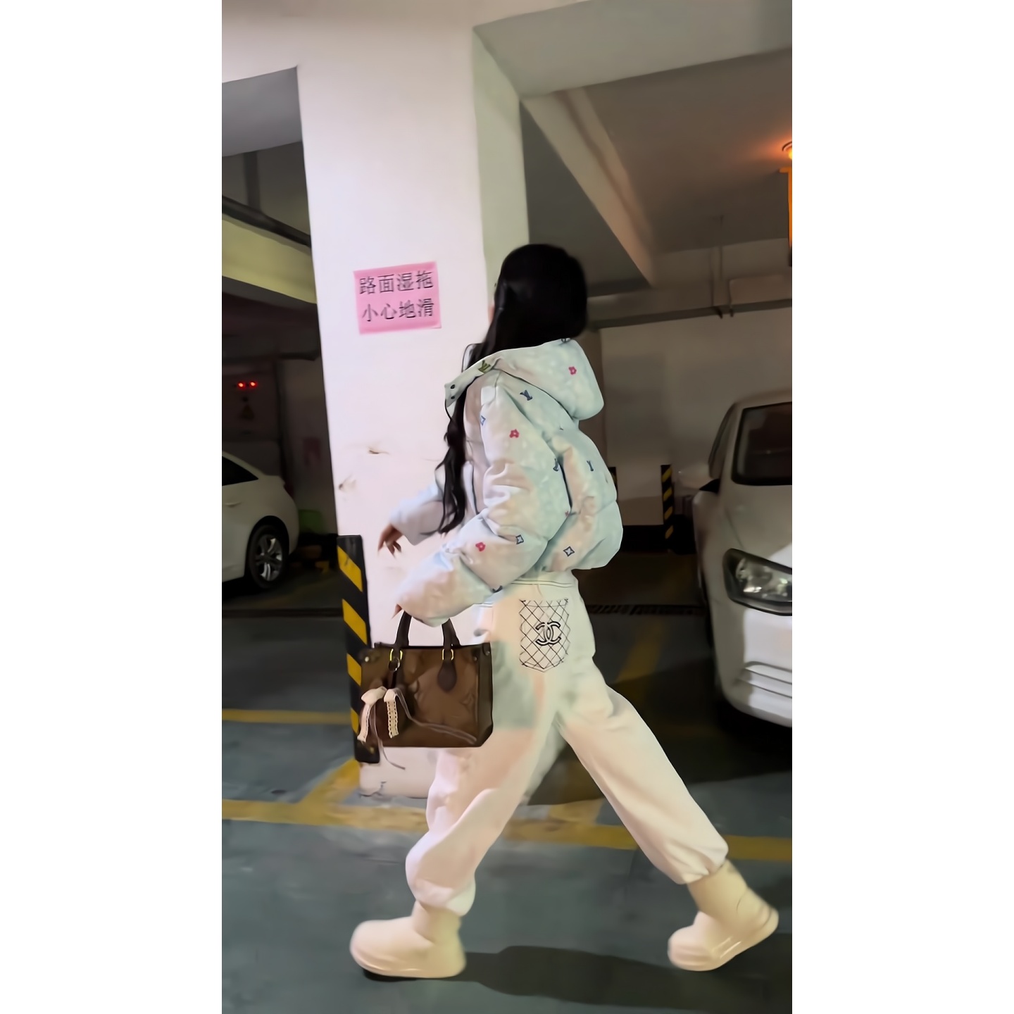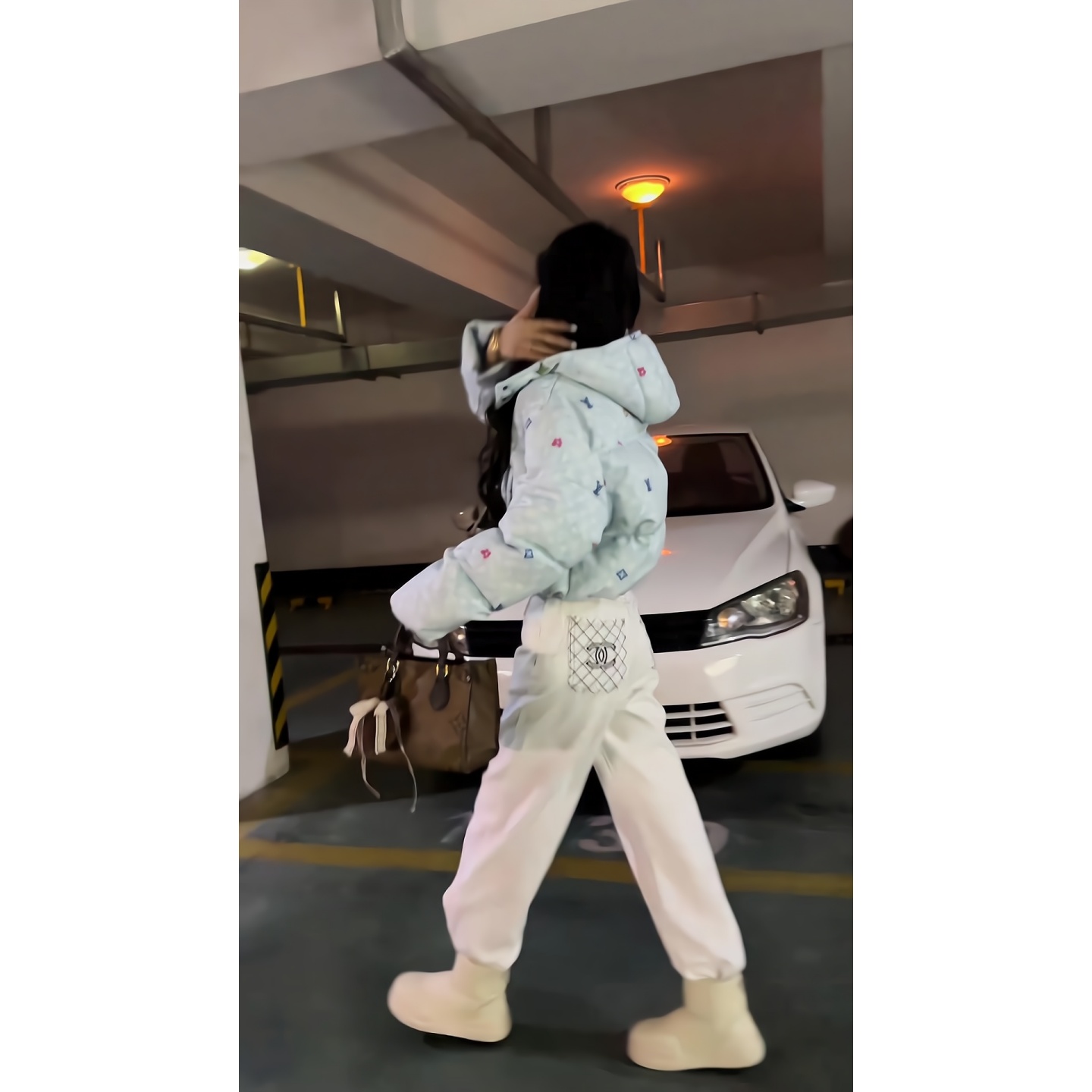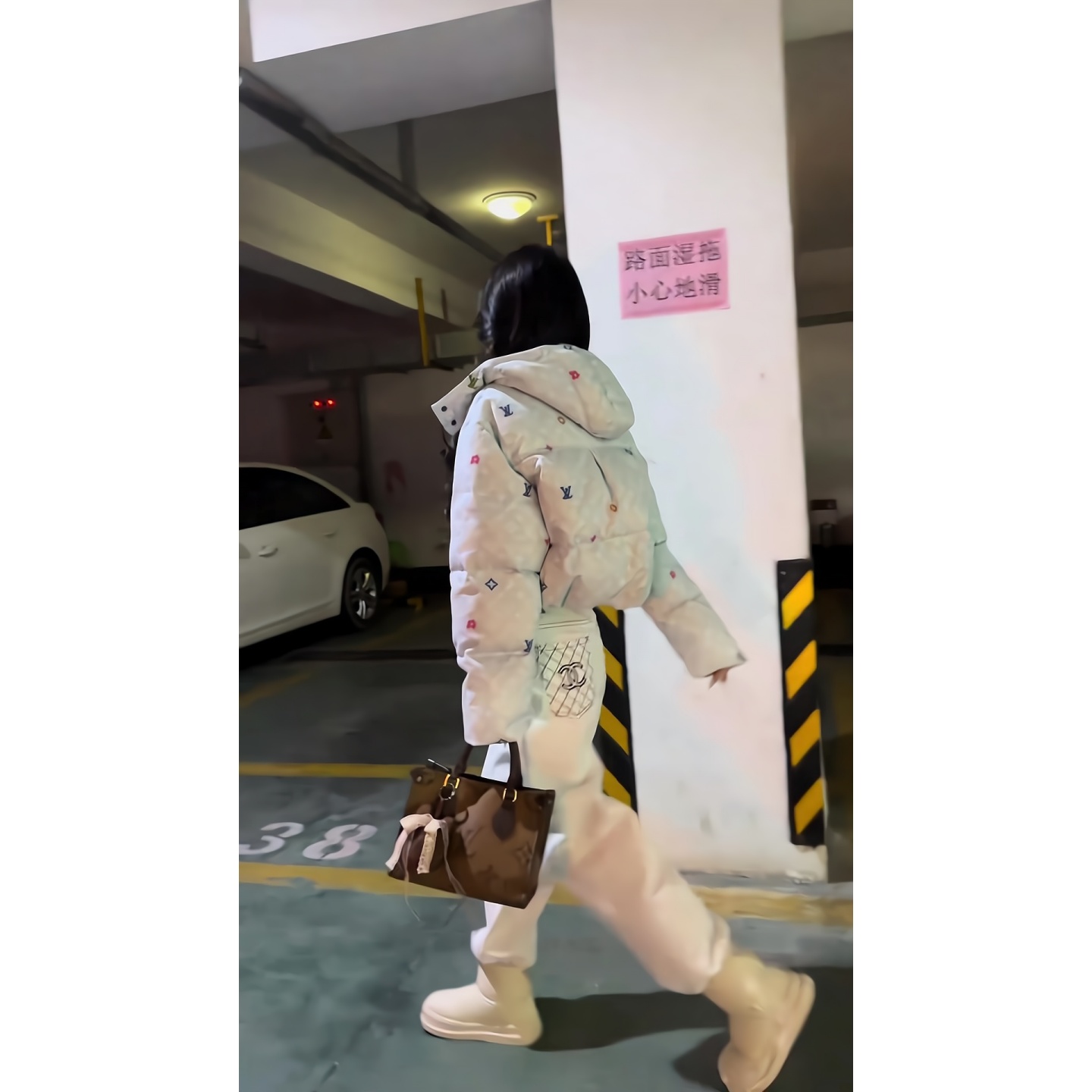 淘宝超推荐超百搭|2025冬季新款时尚字母印花图案连帽90羽绒服外套女