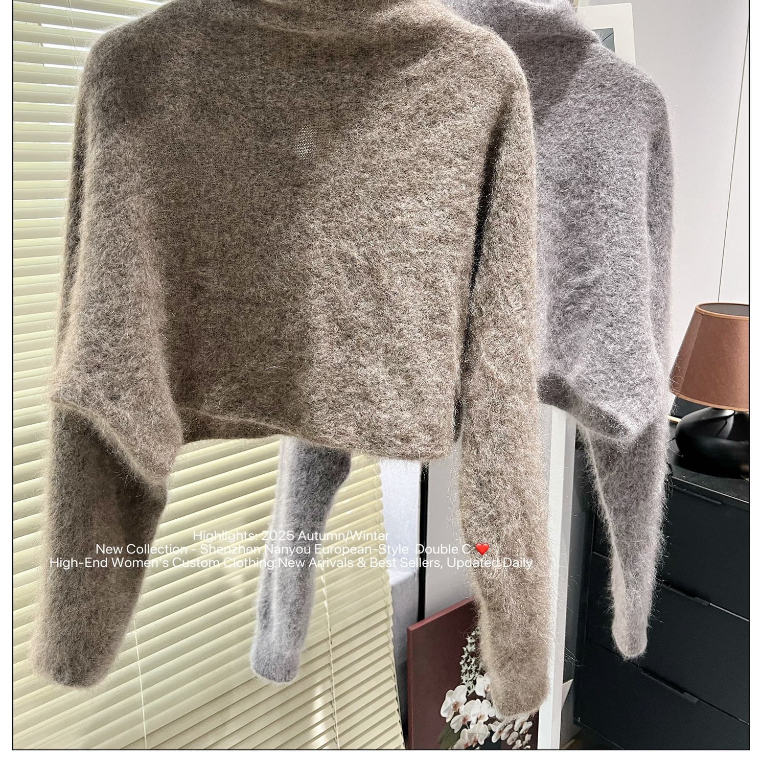 淘宝双C轻奢女装软糯马海毛立领开衫女秋宽松慵懒风针织短款百搭外套