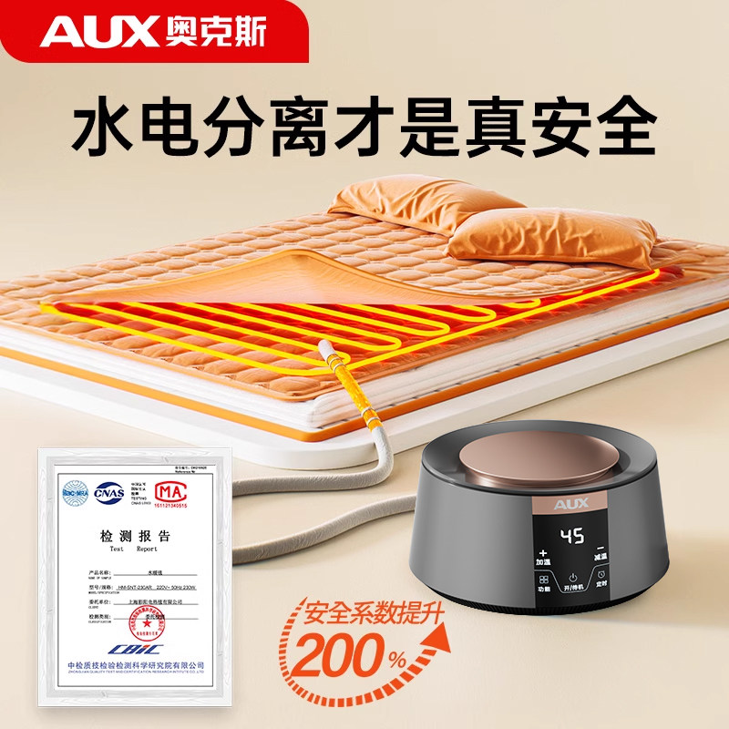 2025年全新推出的奥克斯水暖电热毯,采用先进水循环恒温技术,告别传统电热丝干燥与安全隐患。双人款与单人款可选,适配不同床型,搭配专用水热床垫,实现整夜均匀受热,温暖不燥。内置智能温控系统,支持多档调温与定时功能,节能省电,安全防干烧。食品级硅胶水管环保耐用,静音运行,安睡无忧。可铺可盖,一毯多用,特别适合老人、孕妇及体寒人群。全套包含主机、水毯、连接管及说明书,安装简便,清洁方便。奥克斯水暖电热毯,以科技赋能舒适睡眠,让冬夜温暖如春。