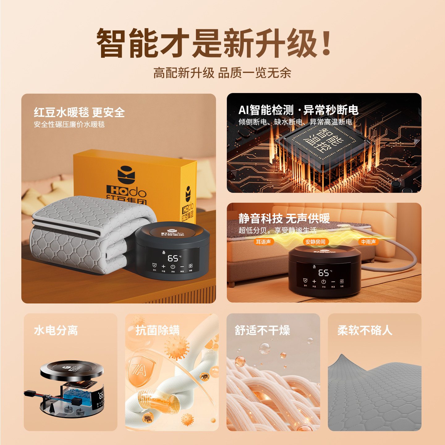 红豆水暖电热毯2025新款智能调温水循环加热电褥子,采用先进水暖循环技术,告别传统电热丝干燥与安全隐患。内置高精度温控系统,支持多档智能调温,精准维持舒适体感温度,整夜恒温不燥热。通过手机APP远程操控,定时开关、温度调节一手掌控。食品级硅胶水管耐高温抗老化,水电分离设计安全无忧。亲肤绒面料柔软透气,支持机洗,洁净更安心。官方旗舰店正品保障,享受全国联保与贴心售后。红豆品牌匠心打造,2025年升级款兼顾健康、安全与智能体验,是冬日温暖睡眠的理想之选,让每一晚都温暖如春。