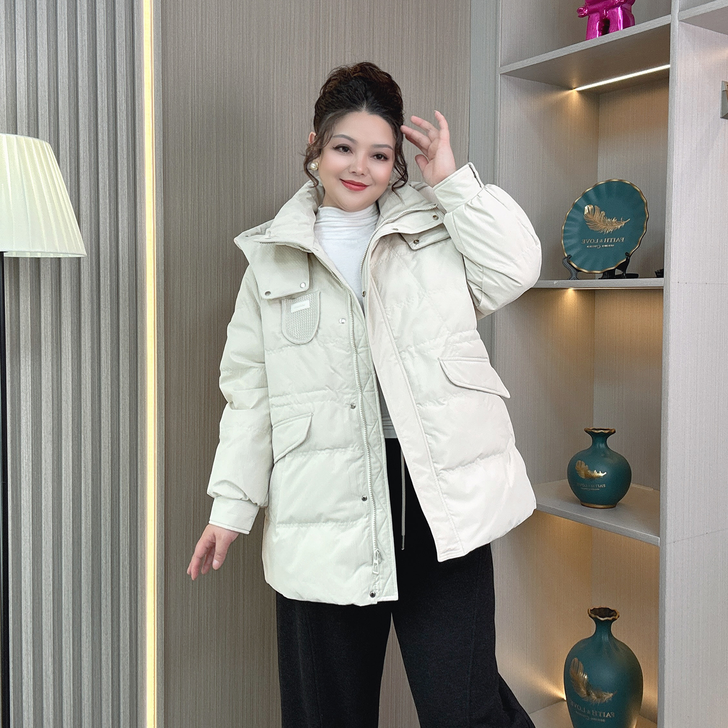 淘胖莹莹特大码羽绒服连帽立领宽松300斤加肥加厚保暖时尚长款外套
