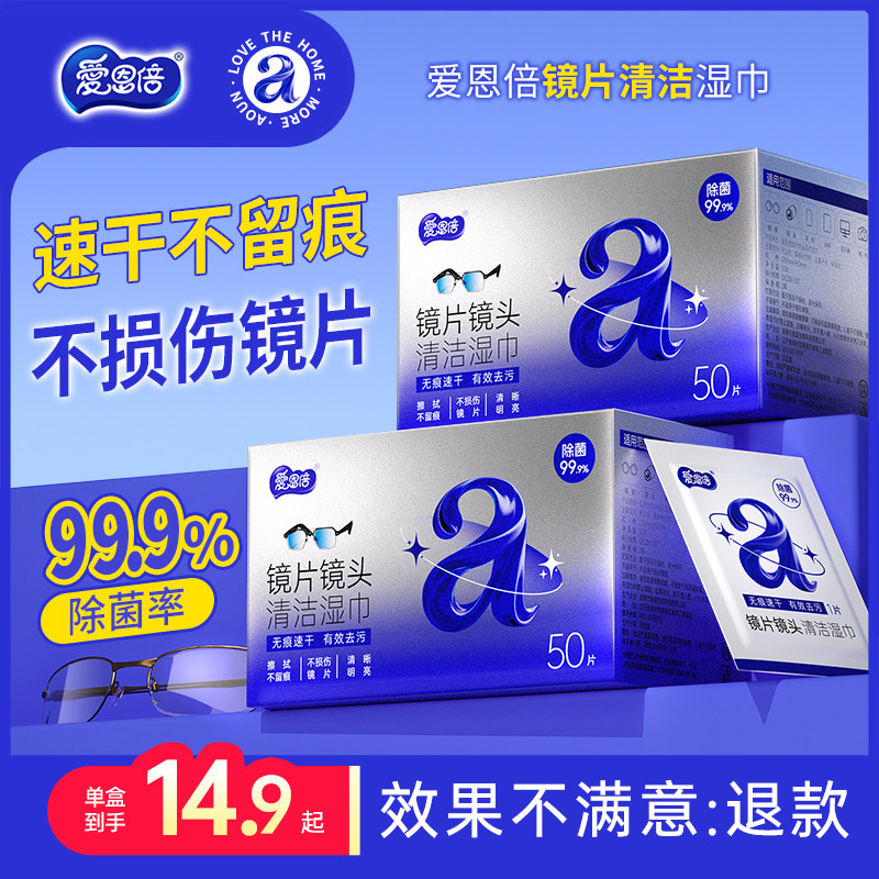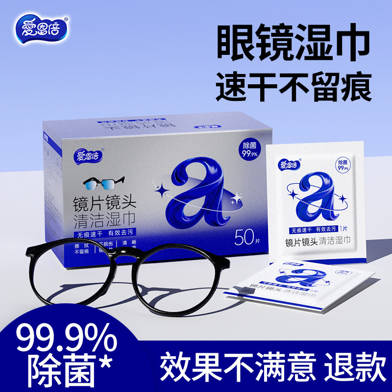 天猫爱恩倍眼镜清洁湿巾不伤镜片防起雾一次性擦眼镜布专用擦拭湿巾