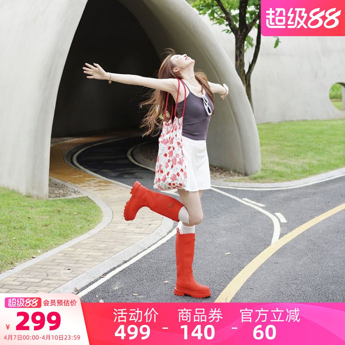 【胡可推荐】星花长筒雨靴女雨鞋防水鞋秋冬雪地靴红色靴子