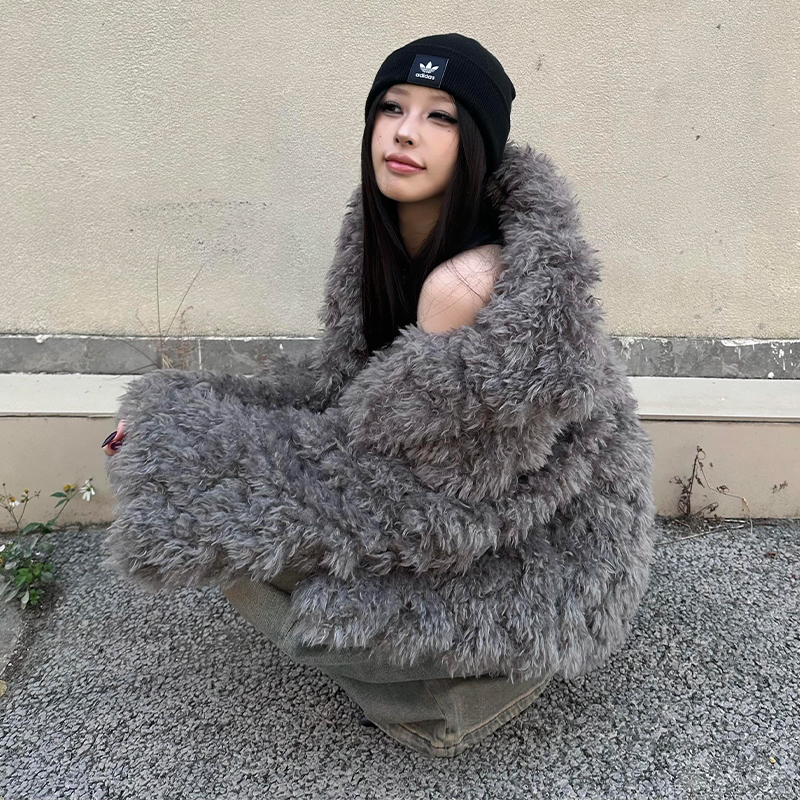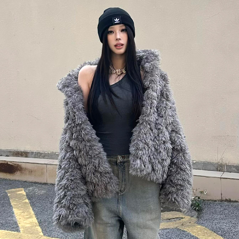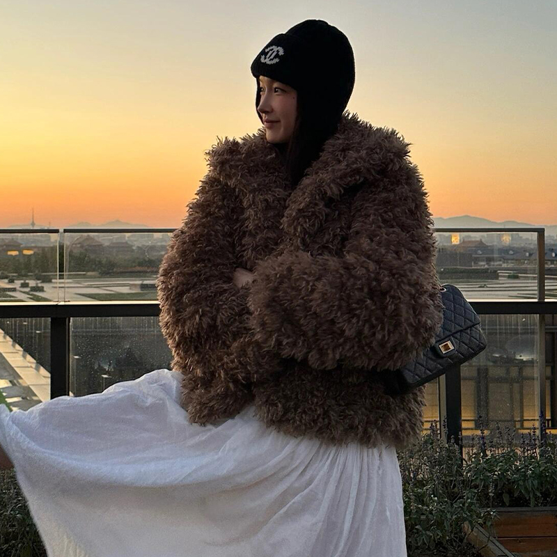 淘宝皮毛一体韩系羊羔毛外套女2025新款超好看棕色毛茸茸环保皮草冬厚