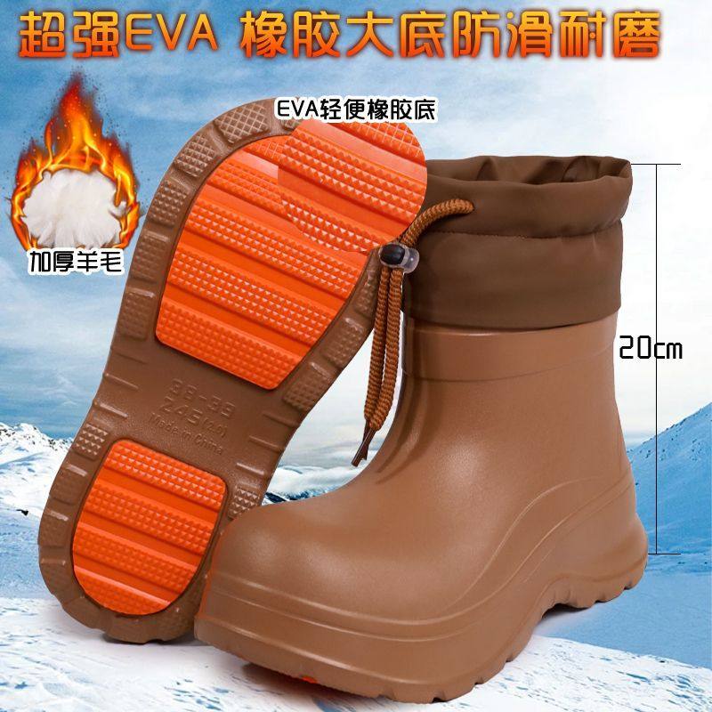 加绒男女雪地靴保暖雨靴防水防滑冷库洗车一次成型水靴耐磨结实