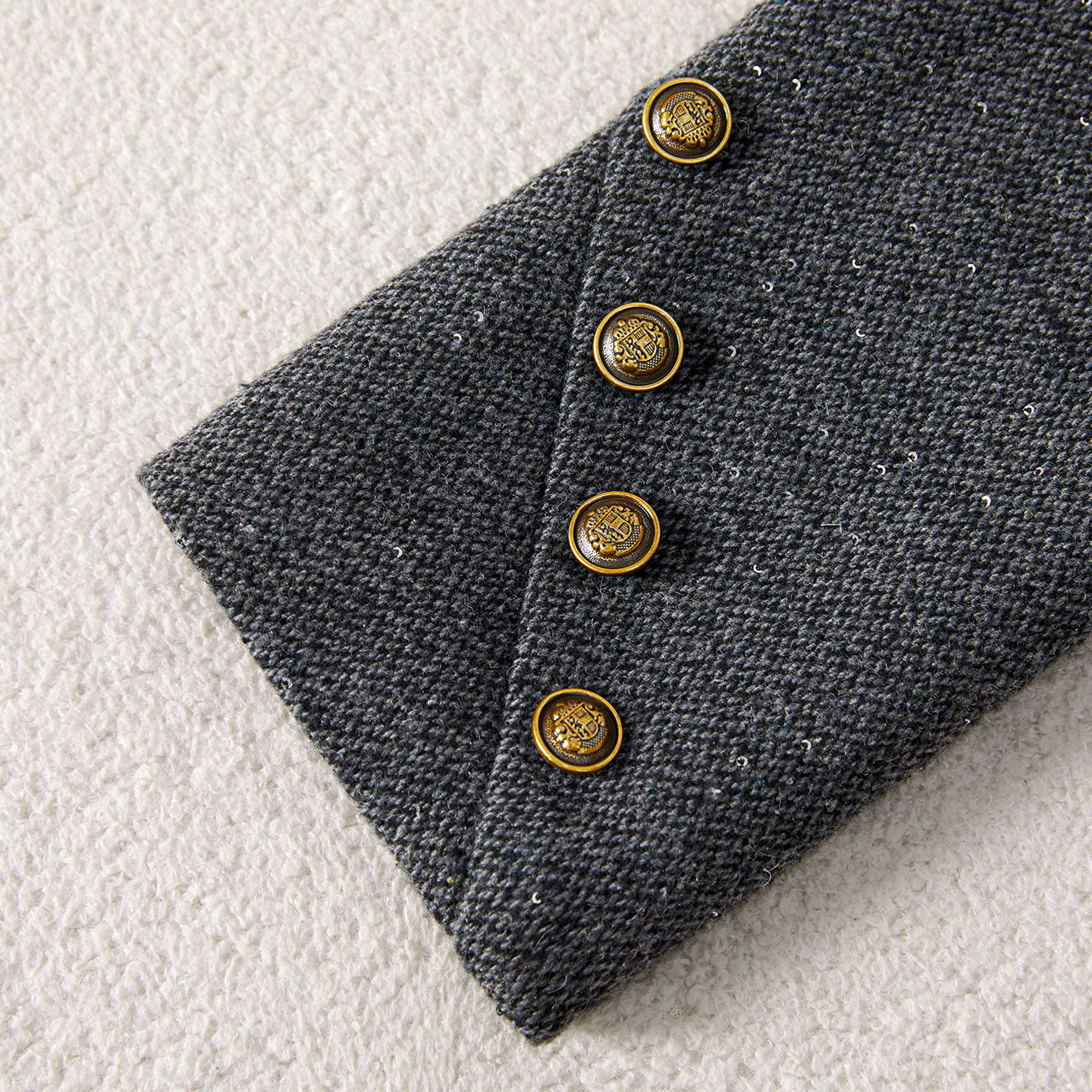 晶咕黑标JGGU女装全尺短款新款秋冬季保暖羊毛呢料羽绒马甲外套