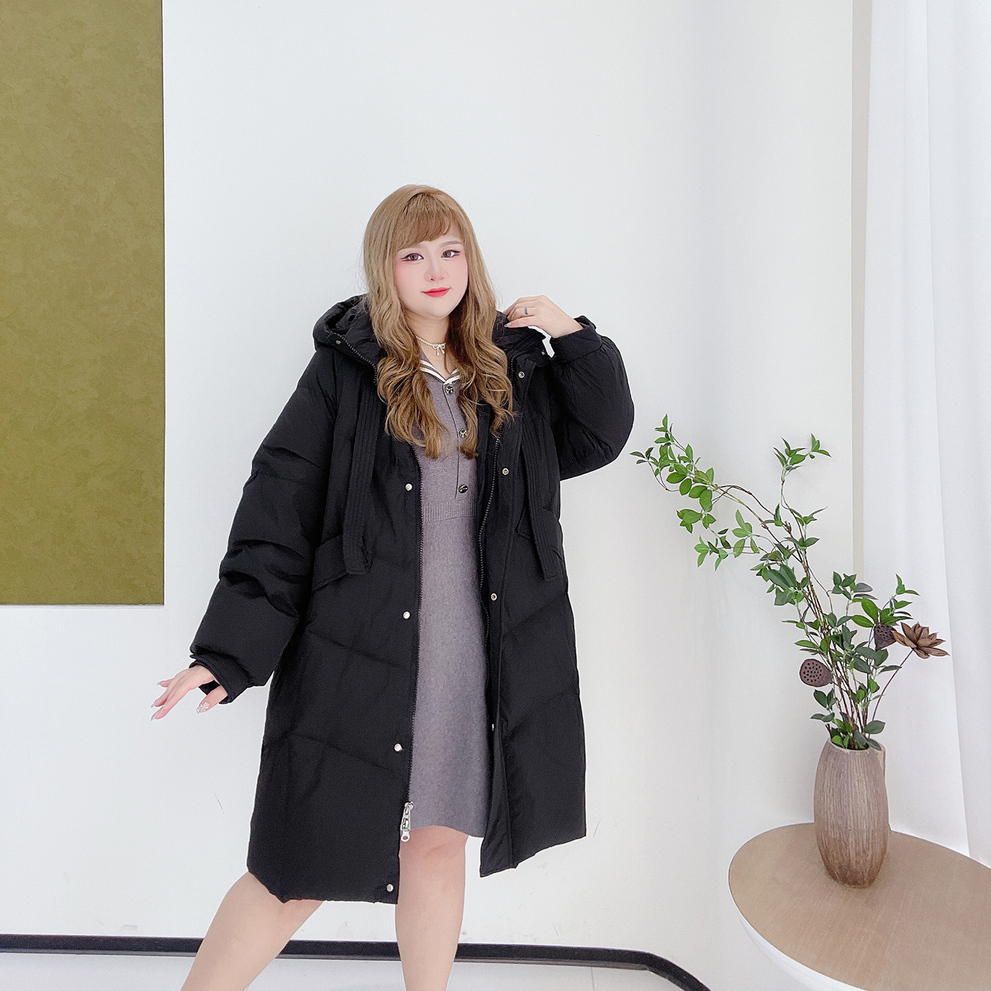 淘宝胖莹莹特大码羽绒服连帽立领宽松300斤加肥加厚保暖时尚长款外套