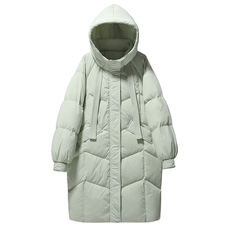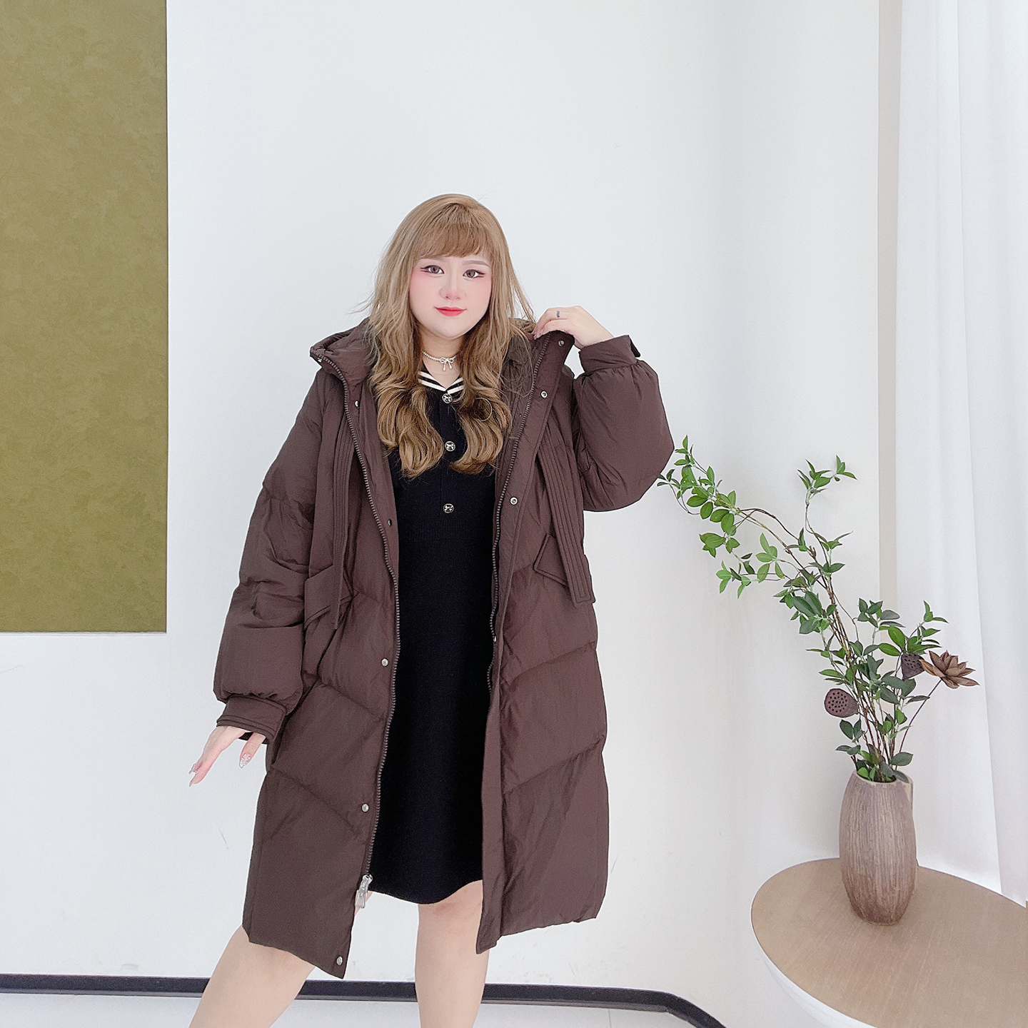 【中长款连帽羽绒服】蓝若水大码女装冬季新款90白鸭绒保暖厚外套