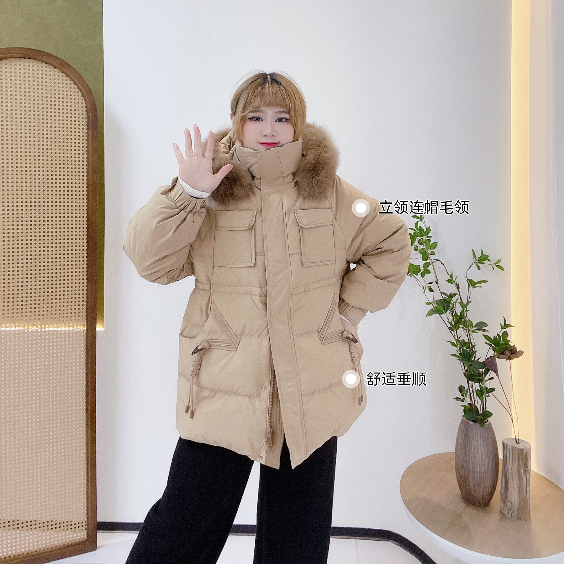 淘宝300斤大码羽绒服大毛领小个子胖莹莹加肥加大加厚宽松短款外套