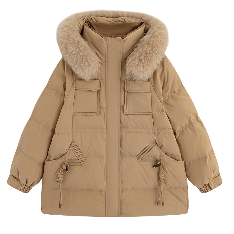 大码女装大毛领羽绒服冬季保暖新款胖mm中长款时尚加厚保暖外套