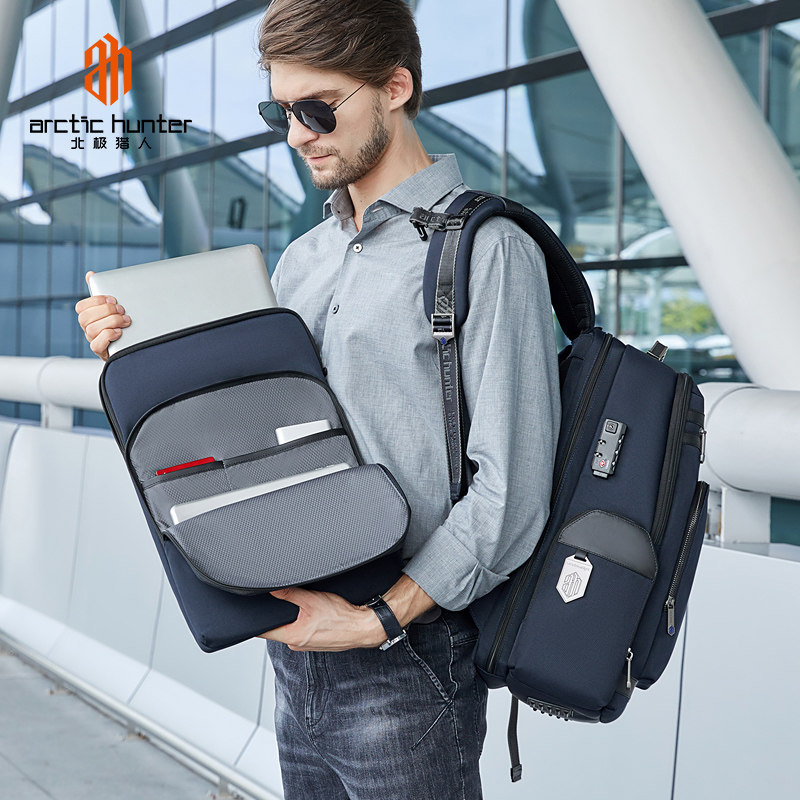 天猫北极猎人背包男士商务双肩包中年出差大容量高端定制电脑包男款包