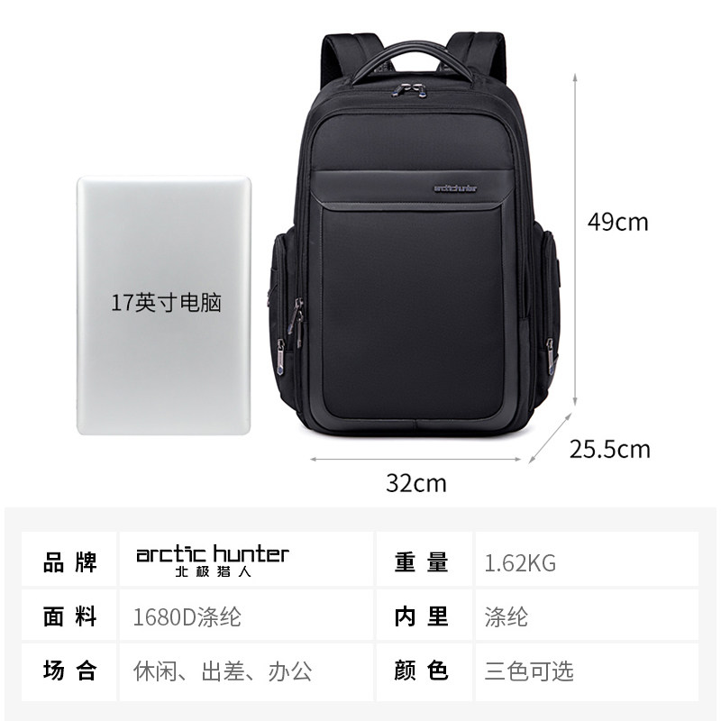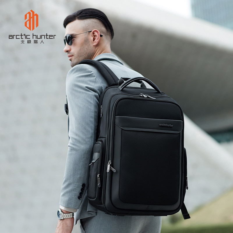 天猫北极猎人双肩包男大容量商务背包电脑包男士短途出差旅行包定制