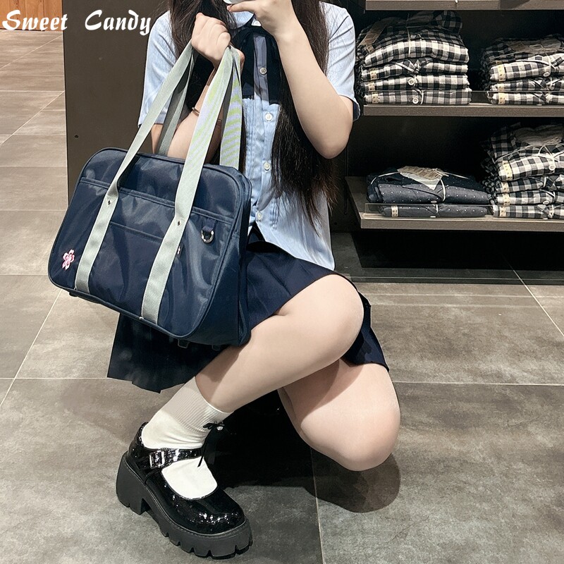 天猫日系基础款刺绣樱花JK制服手提包校供学生电脑书包单肩斜挎包大号